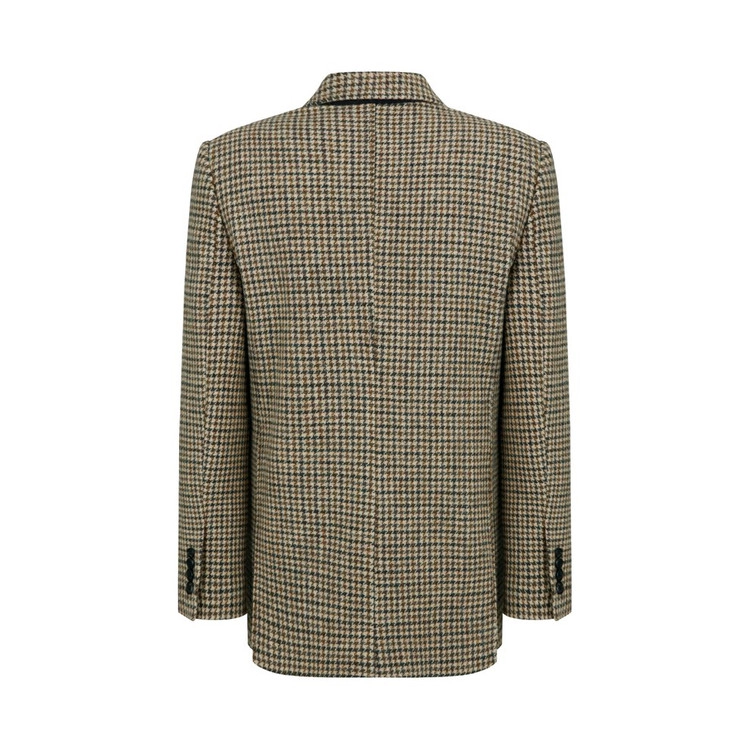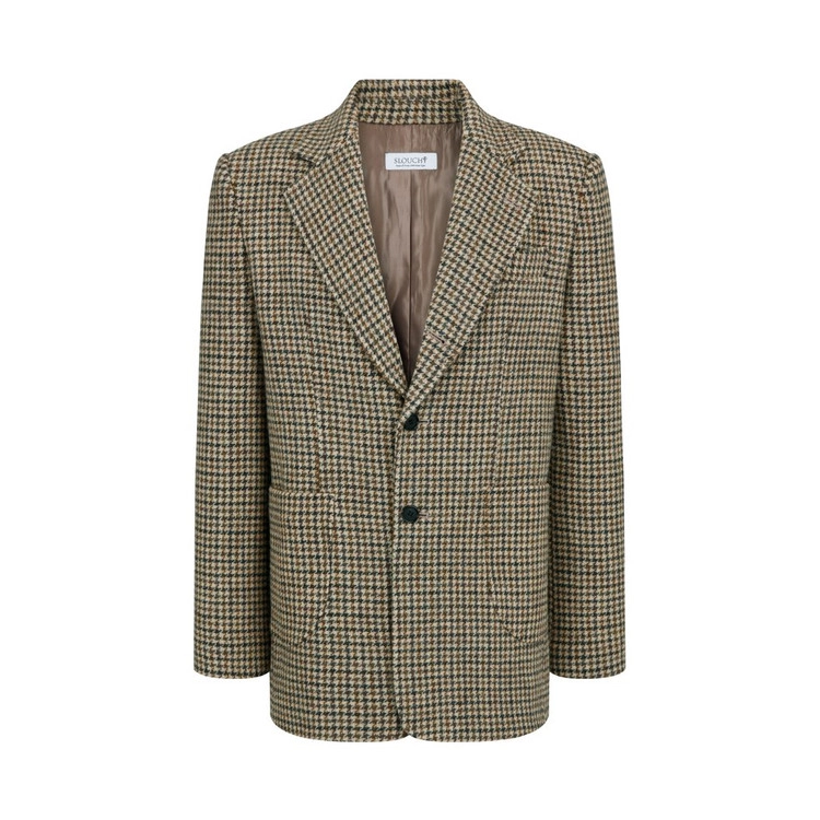 겨울 하운즈투스(Houndstooth) 체크 패턴 울 100% 원단으로 제작된 슬라우치의 스포츠 재킷입니다. 하운즈투스(Houndstooth)는 체크의 형태가 사냥개의 이빨처럼 보이는 데에서 유래된 명칭입니다. 3-Roll-2 베이스의 싱글 스티치 재킷입니다. 고급 소뿔 단추를 활용하였으며, 아웃 포켓과 웰트 포켓이 결합된 캐주얼한 재킷입니다. 클래식한 테일러링의 디테일을 모두 포함한 정갈하고 고급스러운 매력을 선사하는 기본 재킷입니다. 남성들의 에센셜 아이템으로 추천하는 데일리 재킷입니다.