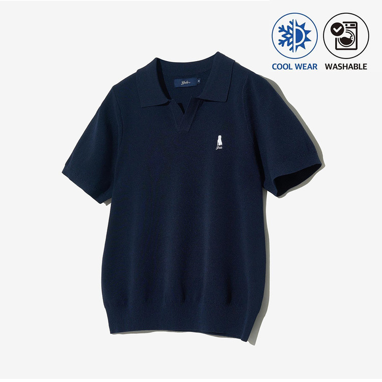 우먼즈 컴포트 쿨 슬릿넥 폴로 니트 네이비