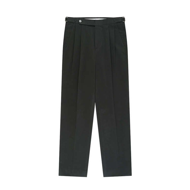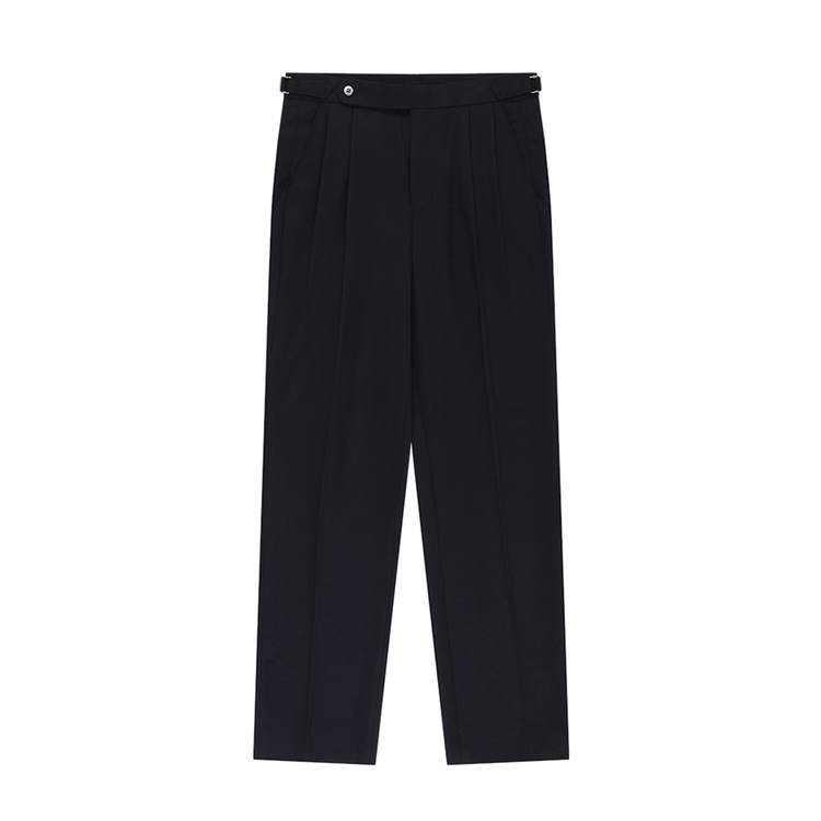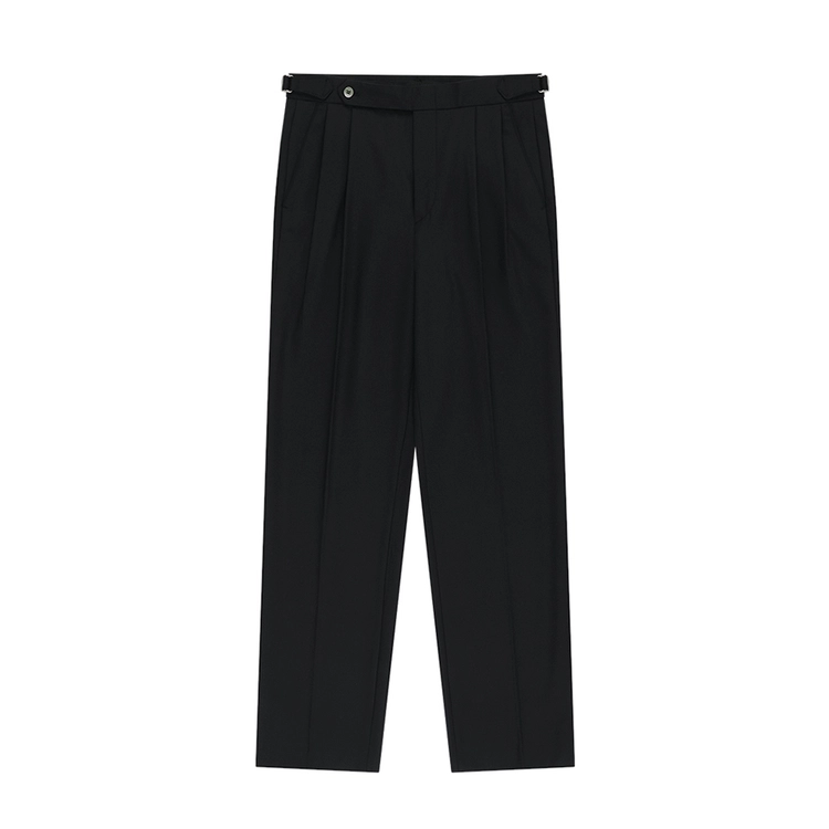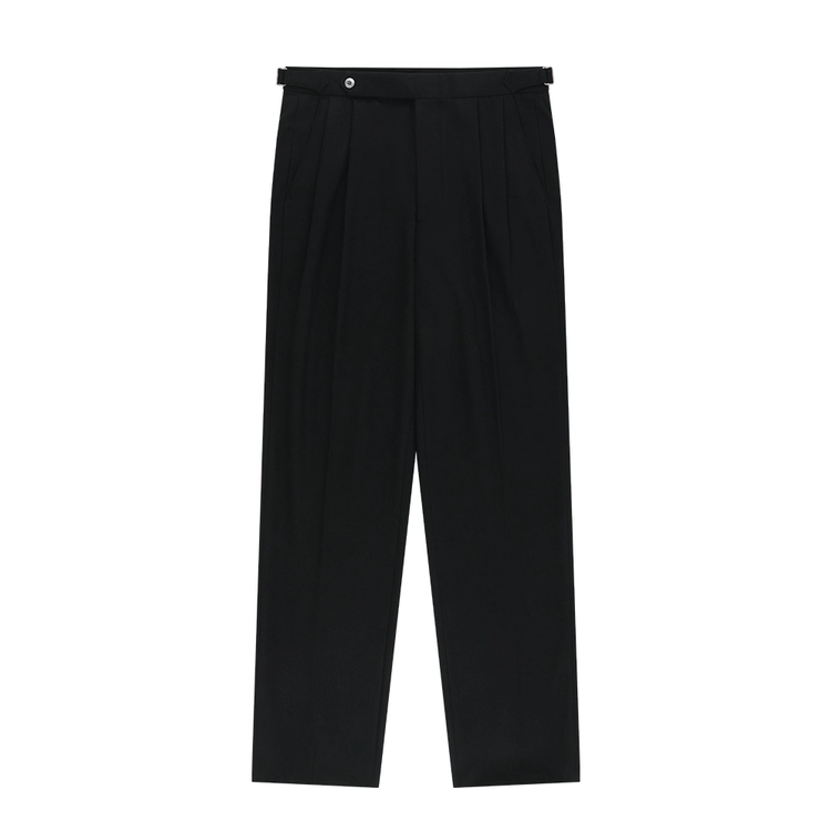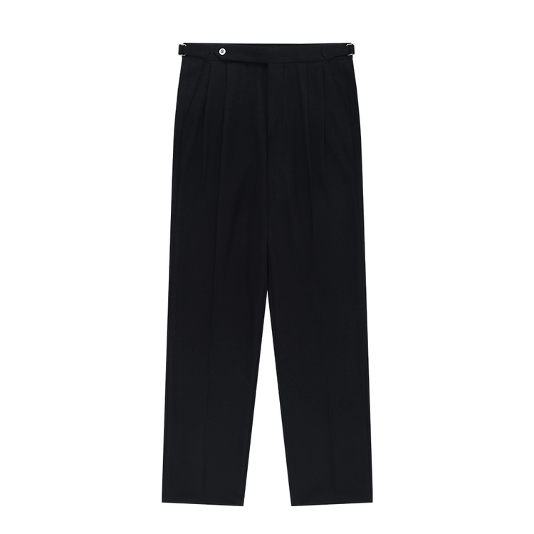 Wool Gabardine adjust Double-Pleated relaxed Trouser (Black)
