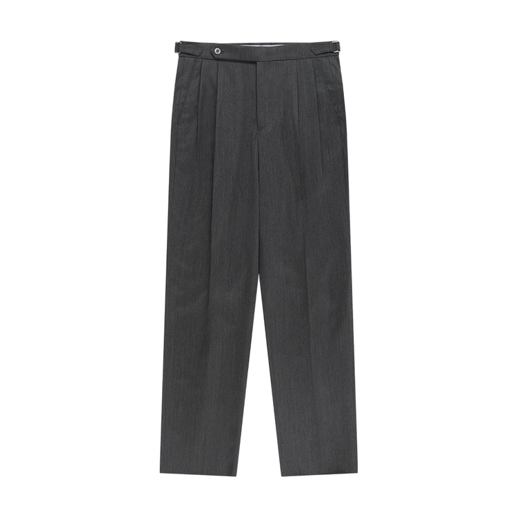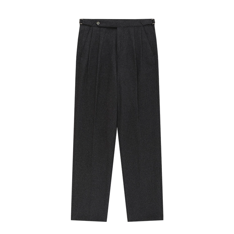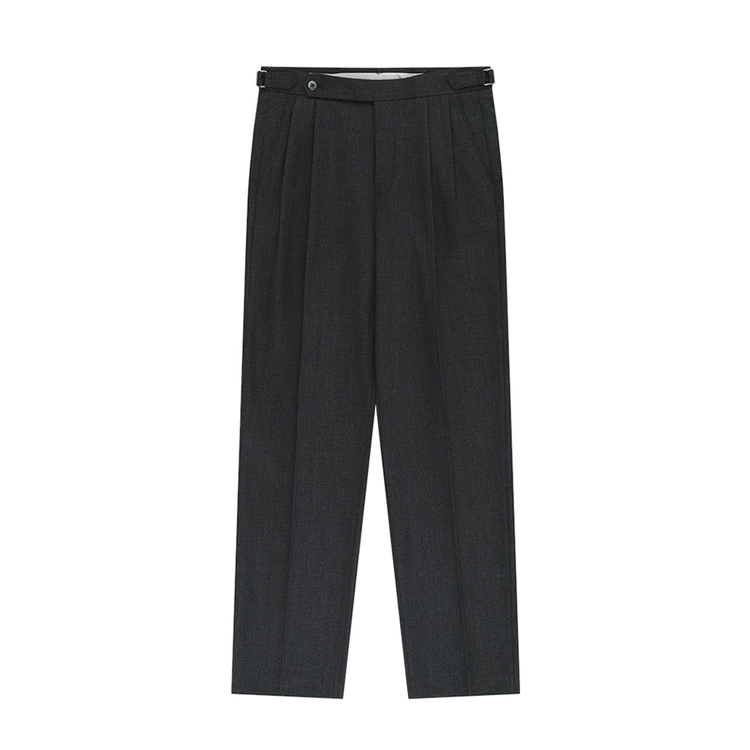 Wool Gabardine adjust Double-Pleated relaxed Trouser (Charcoal)
