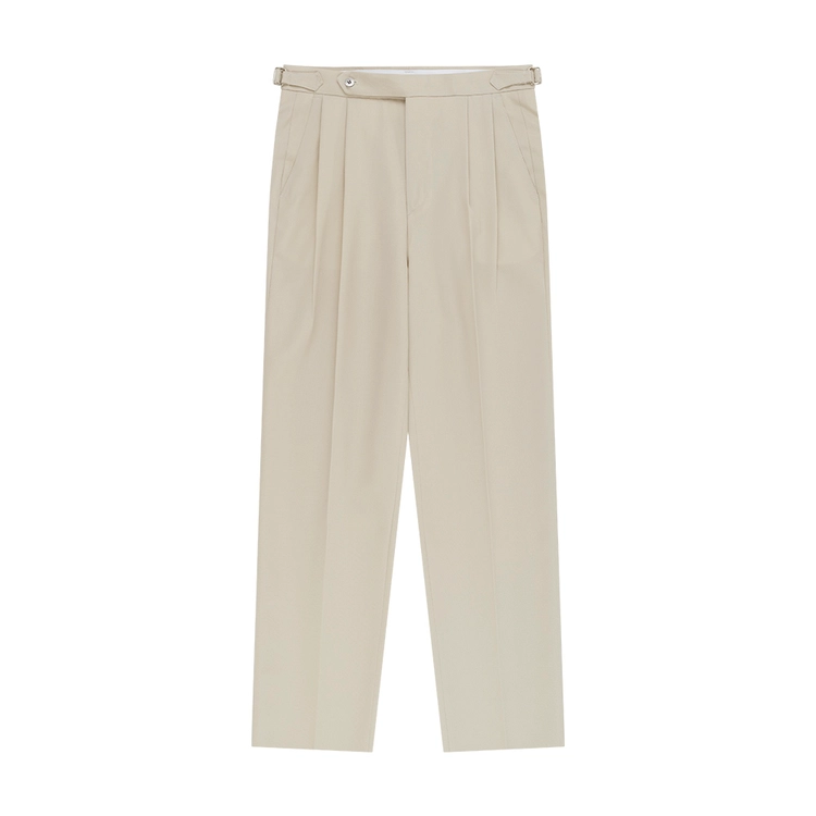 Essential Wool Gabardine Adjust Twill 2-Pleated Relaxed Trousers (Beige)