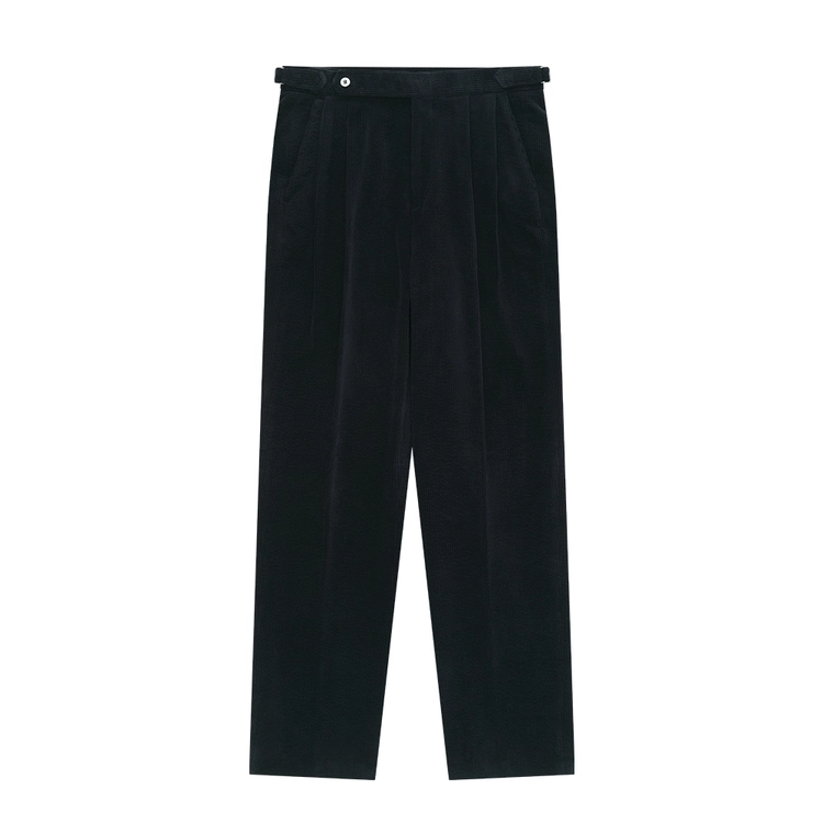 Corduroy adjust Double-Pleated relaxed Trouser (Navy)