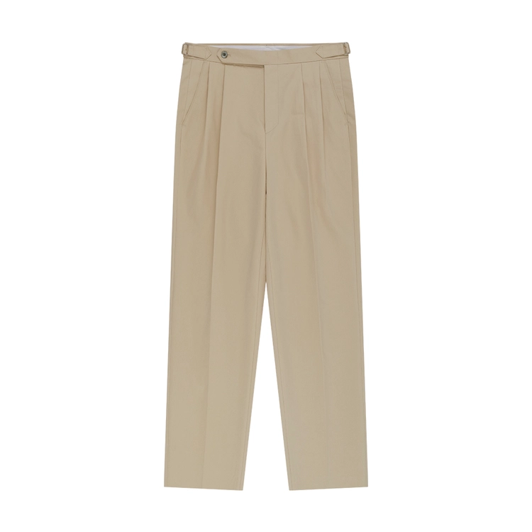 Essential Cotton Twill Adjust 2-Pleated Relaxed Chino (Beige)