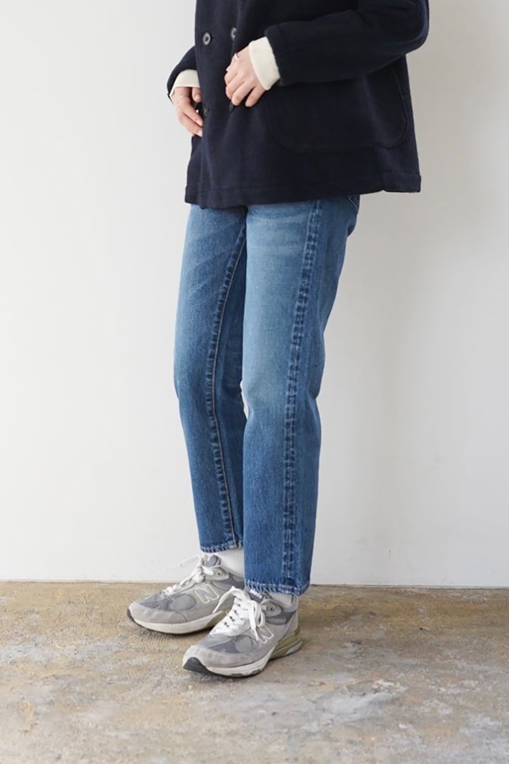 - 허리, 엉덩이 주위가 느긋한 깨끗한 테이퍼드 실루엣