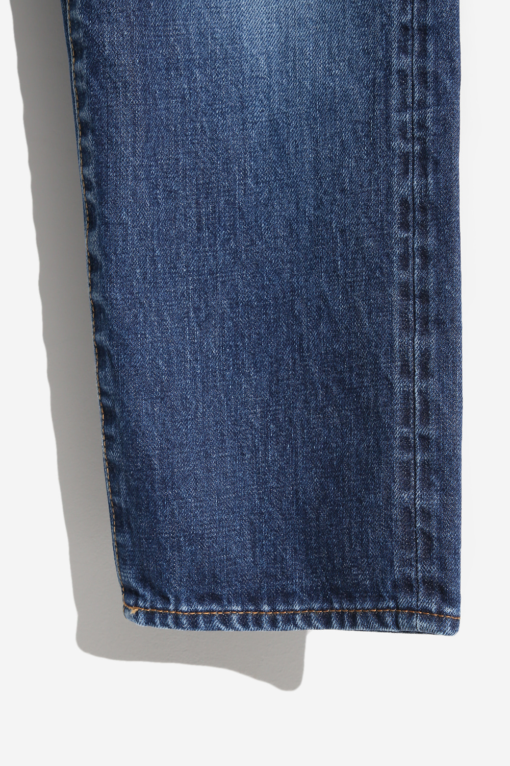 5PKT ANKLE DENIM USED WASH NEW 1YEAR는 ORDINARY FITS 브랜드를 대표하는 베스트셀러 제품입니다. 코지마 산 13OZ 셀비지 데님 소재를 사용하였습니다. 발목까지 내려오는 총장과 웨어러블하게 입기 좋은 스트레이트 핏을 구성하여 높은 활용도를 자랑합니다. 워싱을 통한 밑단의 퍼커링, 버튼 플라이, 옐로 스티치, 내추럴한 컬러감을 선사하는 1YEAR 워싱 과정을 통해 경년변화를 즐겨보실 수 있으며, 폭넓은 코디네이트가 가능한 데님입니다. 오리지널 스카프가 함께 제공됩니다.