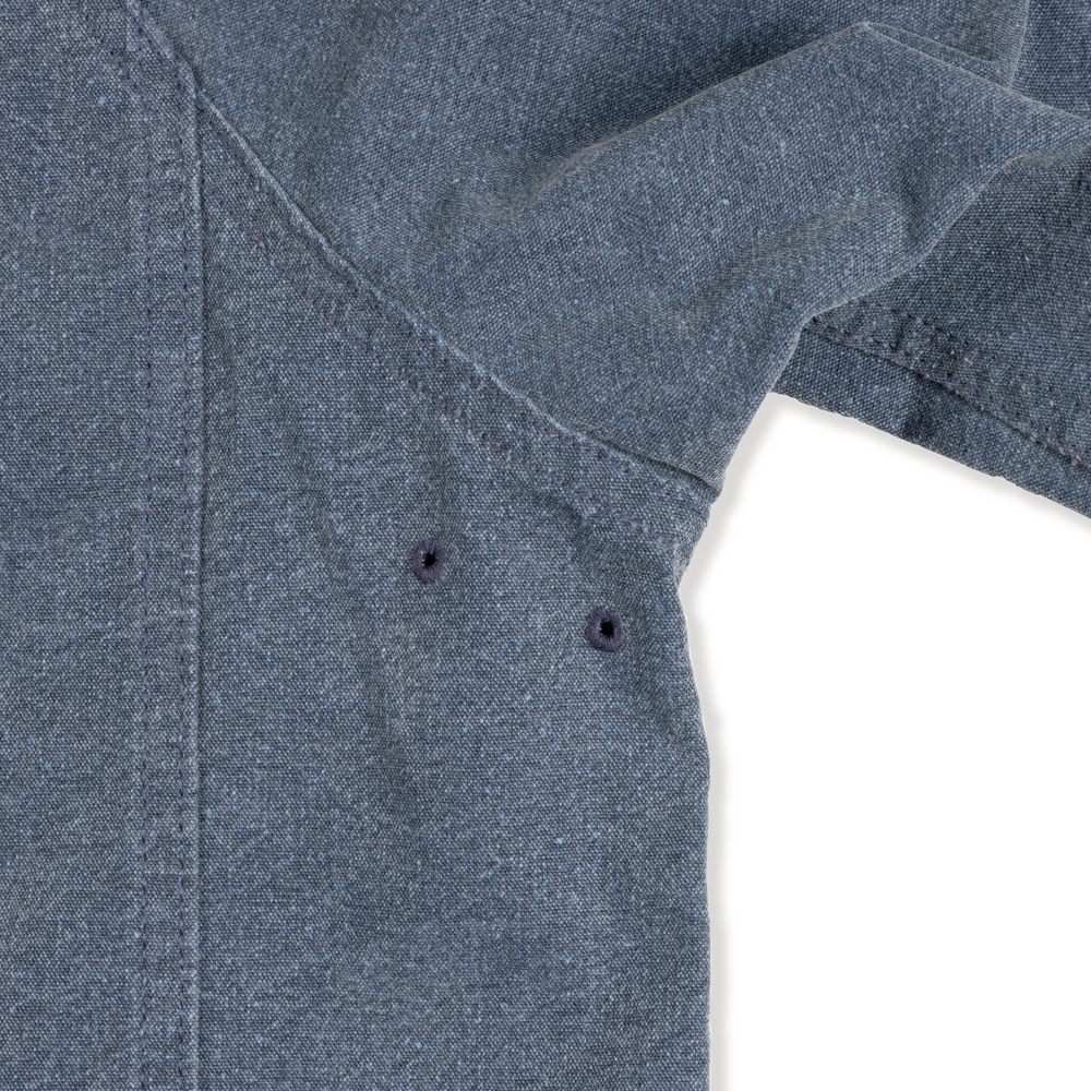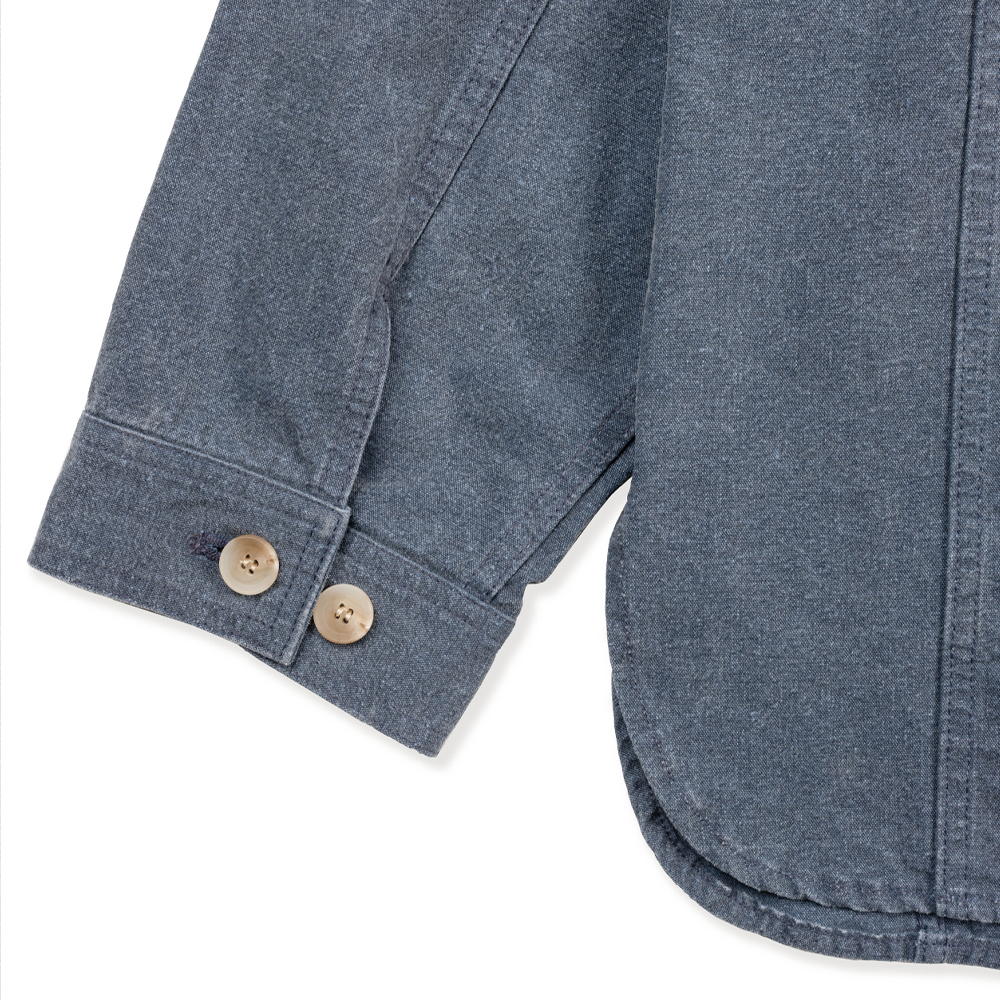 워크웨어의 정체성을 살리기 위해 10수 캔버스 원단을 사용하여 밀도높은 조직감을 선사하며, 각 이음새마다 더블 스티치로 마감하여 견고함을 높였습니다. 피그먼트 가공처리가 되어 바랜듯한 컬러감이 특징이며, 이는 빈티지한 인상을 더해줍니다.
