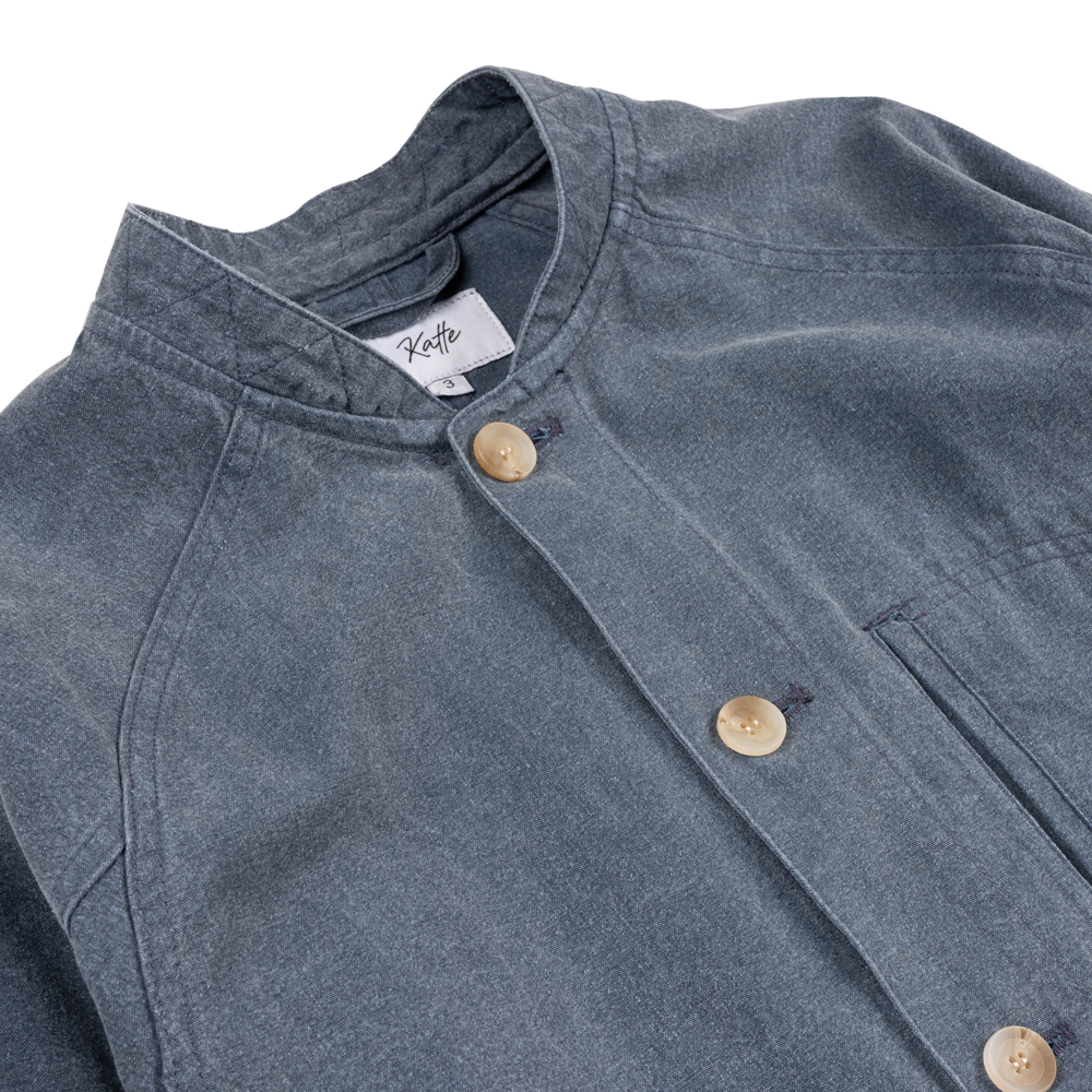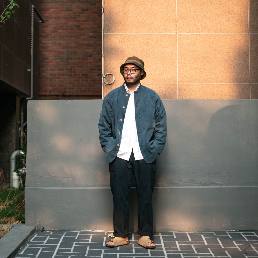 전체적인 실루엣은 동아시아의 전통복의 곡선 느낌을 살렸고, 그 안에는 미국의 워크웨어의 디테일을 넣었습니다. 오버핏으로 디자인되어 통기성이 뛰어나며, 추운 날씨엔 이너패딩 등을 입을 수 있게 암홀과 가슴을 여유 있게 디자인하였습니다. 왼쪽 가슴의 포켓은 핸드폰을 넣기에 최적화 되었으며, 입구가 측면에 위치하여, 소지품들을 넣고 빼기에 용이합니다. 또한 전면 하단의 아웃 포켓은 입구를 사선방향으로 만들어, 평소 손을 넣고 빼기 편하게 제작하였습니다.