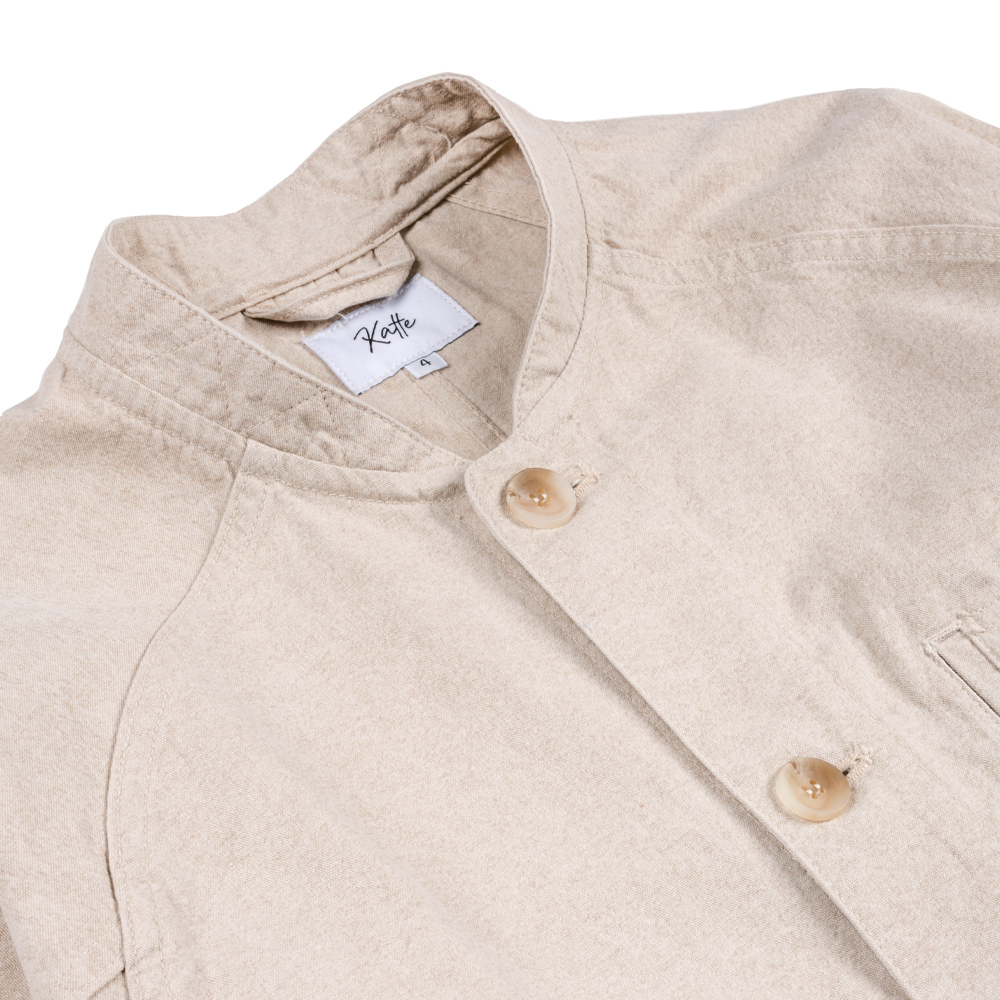 전체적인 실루엣은 동아시아의 전통복의 곡선 느낌을 살렸고, 그 안에는 미국의 워크웨어의 디테일을 넣었습니다. 오버핏으로 디자인되어 통기성이 뛰어나며, 추운 날씨엔 이너패딩 등을 입을 수 있게 암홀과 가슴을 여유 있게 디자인하였습니다. 왼쪽 가슴의 포켓은 핸드폰을 넣기에 최적화 되었으며, 입구가 측면에 위치하여, 소지품들을 넣고 빼기에 용이합니다. 또한 전면 하단의 아웃 포켓은 입구를 사선방향으로 만들어, 평소 손을 넣고 빼기 편하게 제작하였습니다.
