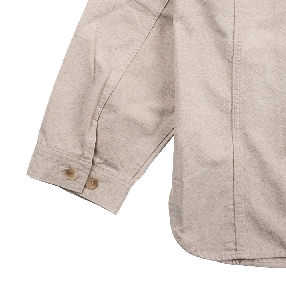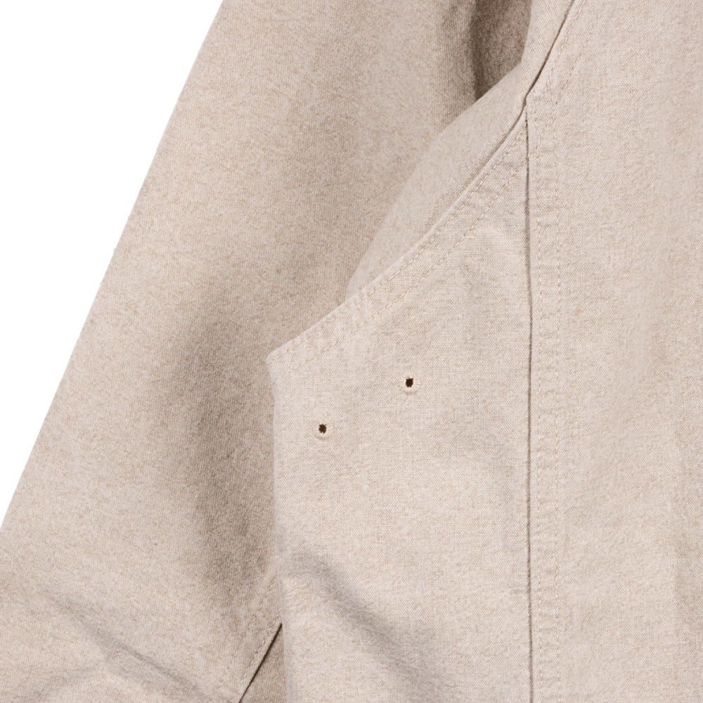 워크웨어의 정체성을 살리기 위해 10수 캔버스 원단을 사용하여 밀도높은 조직감을 선사하며, 각 이음새마다 더블 스티치로 마감하여 견고함을 높였습니다. 피그먼트 가공처리가 되어 바랜듯한 컬러감이 특징이며, 이는 빈티지한 인상을 더해줍니다.