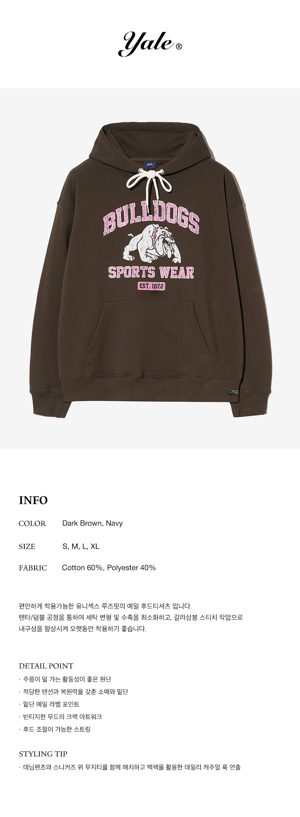 빈티지 크랙 불독스 스포츠 후드_다크 브라운