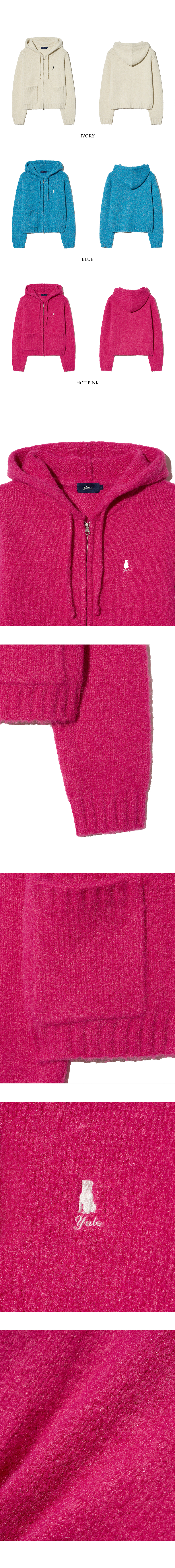 우먼즈 헤어리 크롭 니트 후드 집업_아이보리