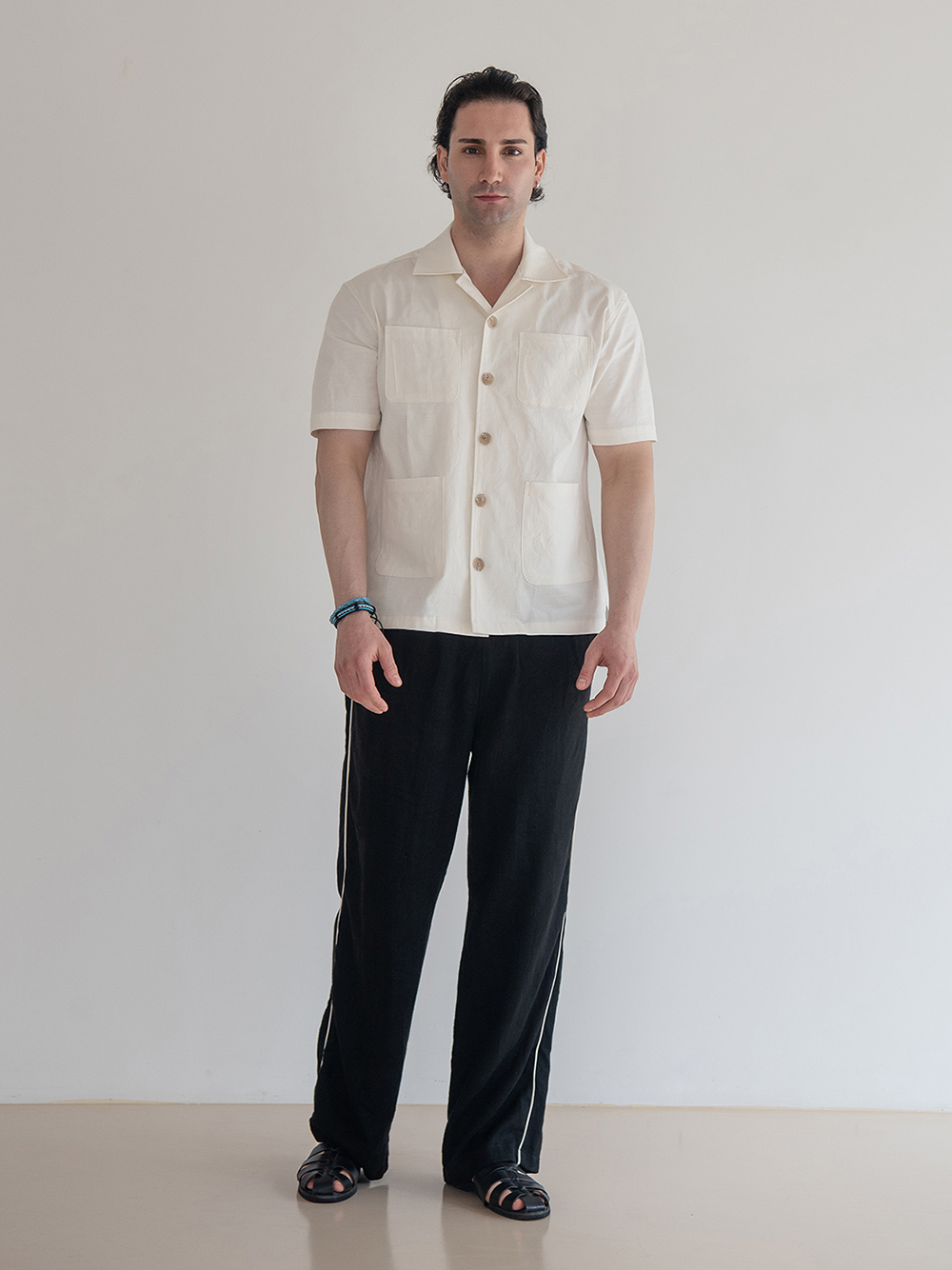 사이드 스티치 헤링본 린넨 와이드 팬츠