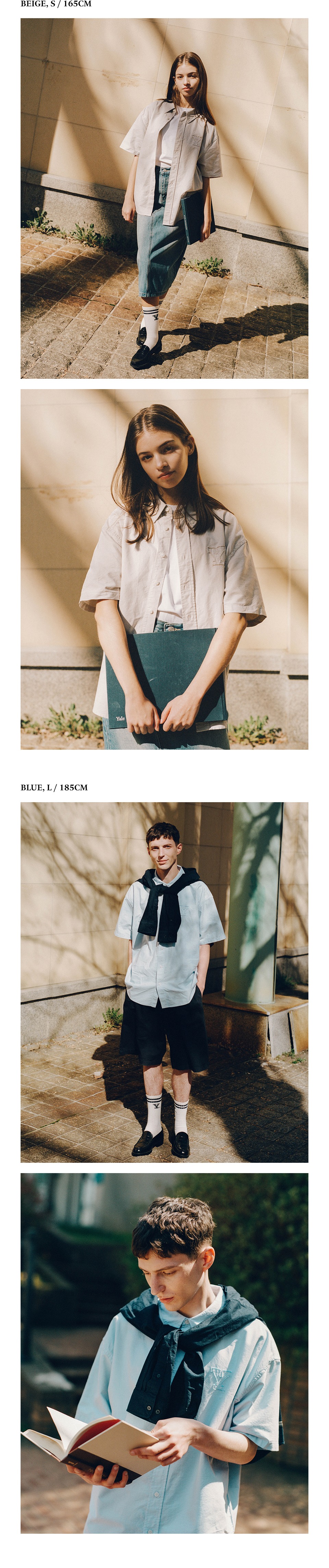 Y로고 오버사이즈 옥스포드 셔츠_블루