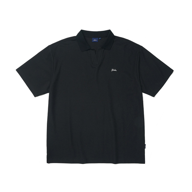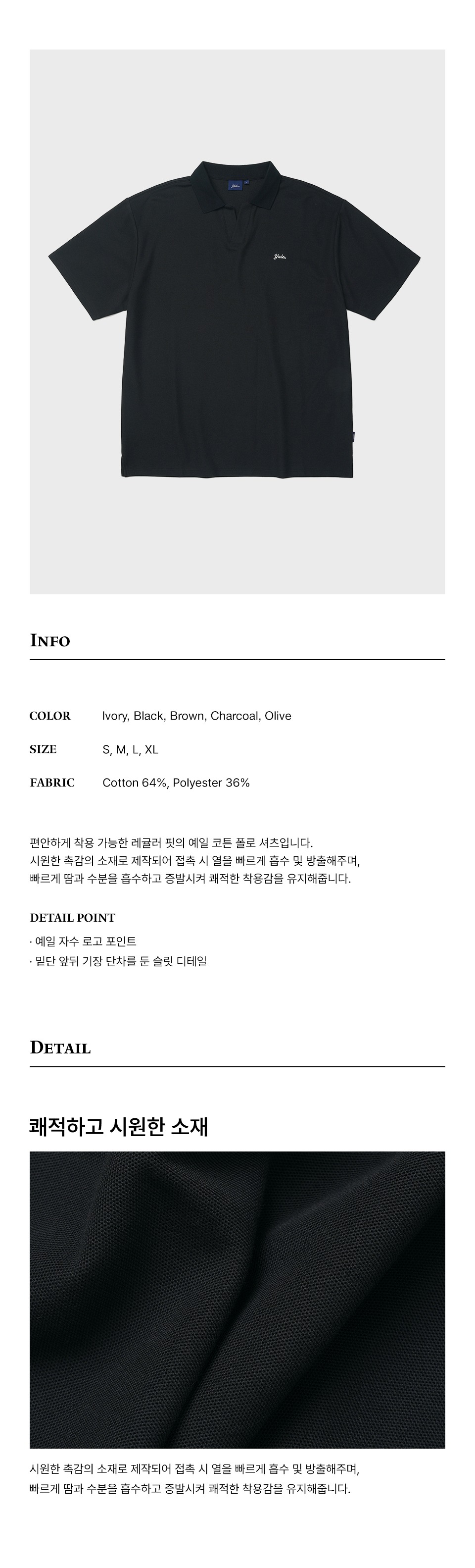 퀵 드라이 슬릿넥 폴로 셔츠_블랙