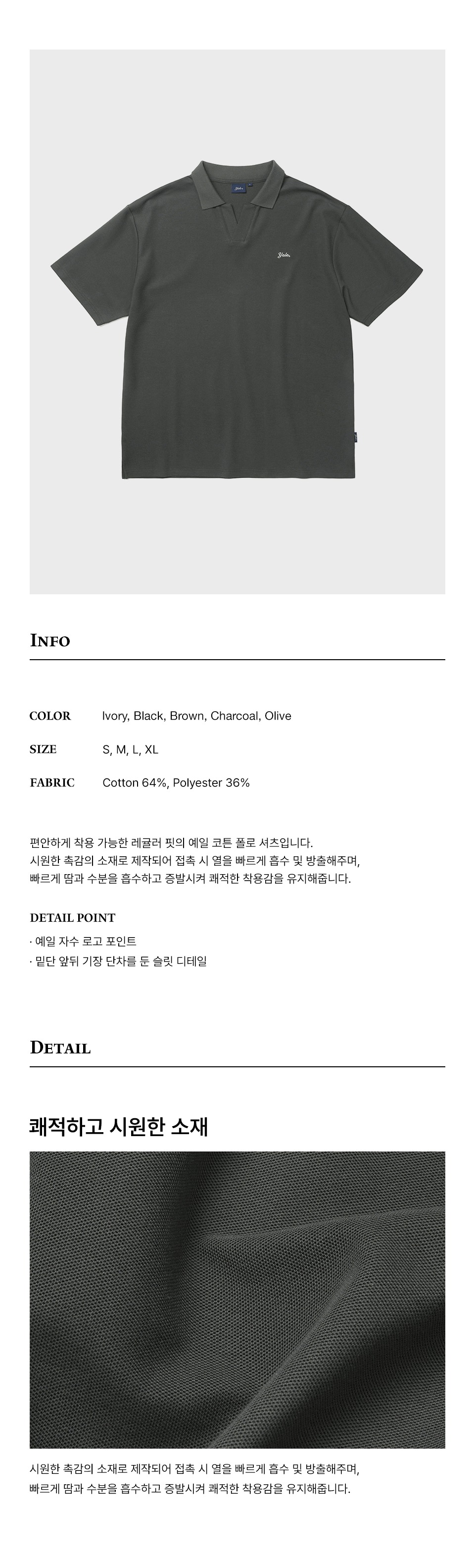 퀵 드라이 슬릿넥 폴로 셔츠_차콜