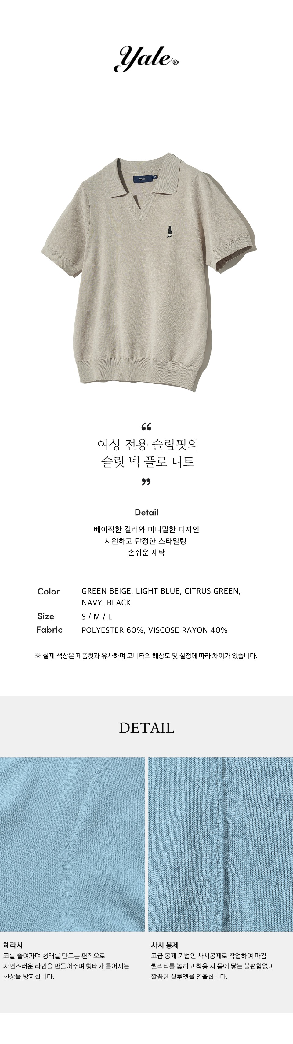 우먼즈 컴포트 쿨 슬릿넥 폴로 니트 그린 베이지