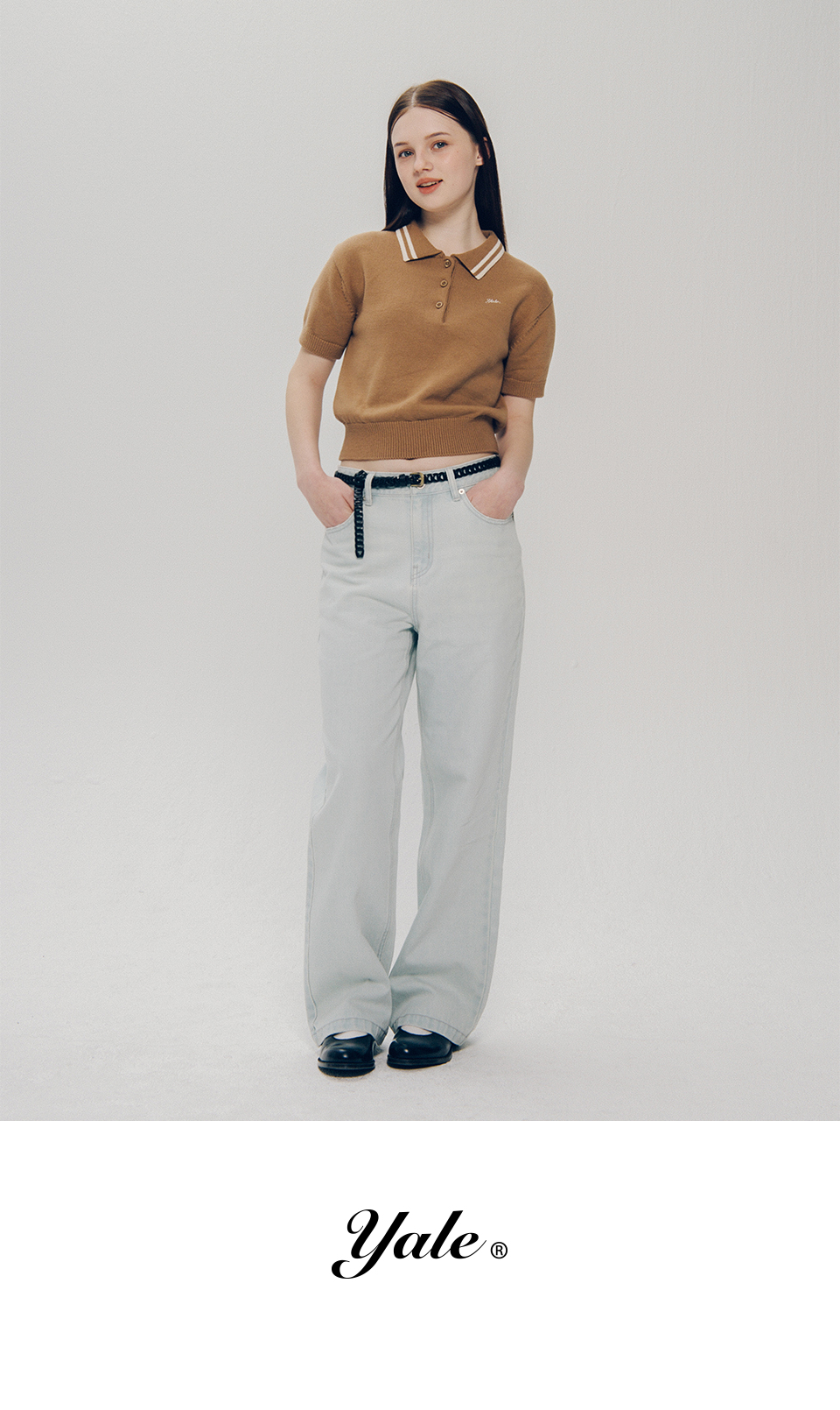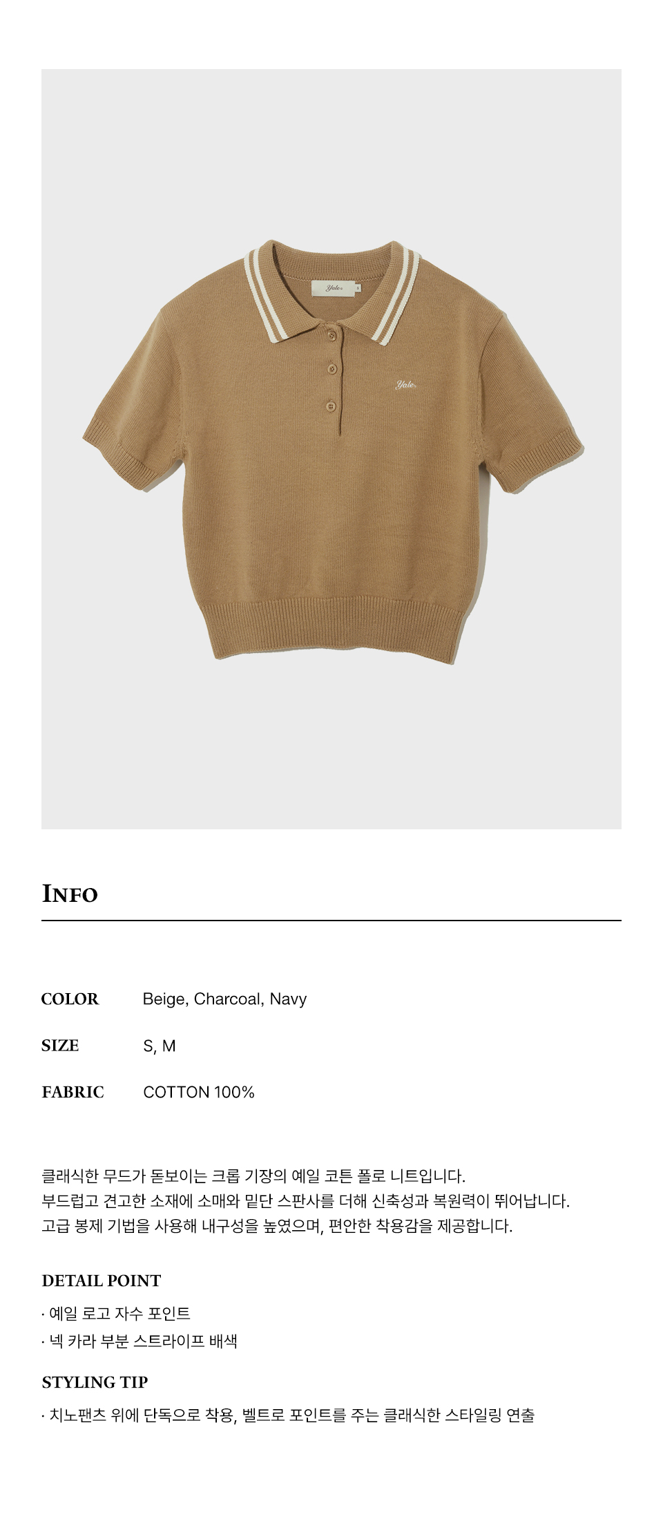 우먼즈 코튼 폴로 크롭 니트_베이지