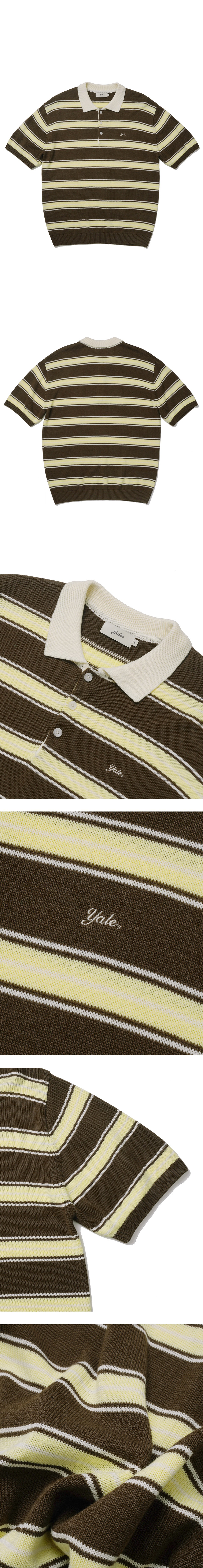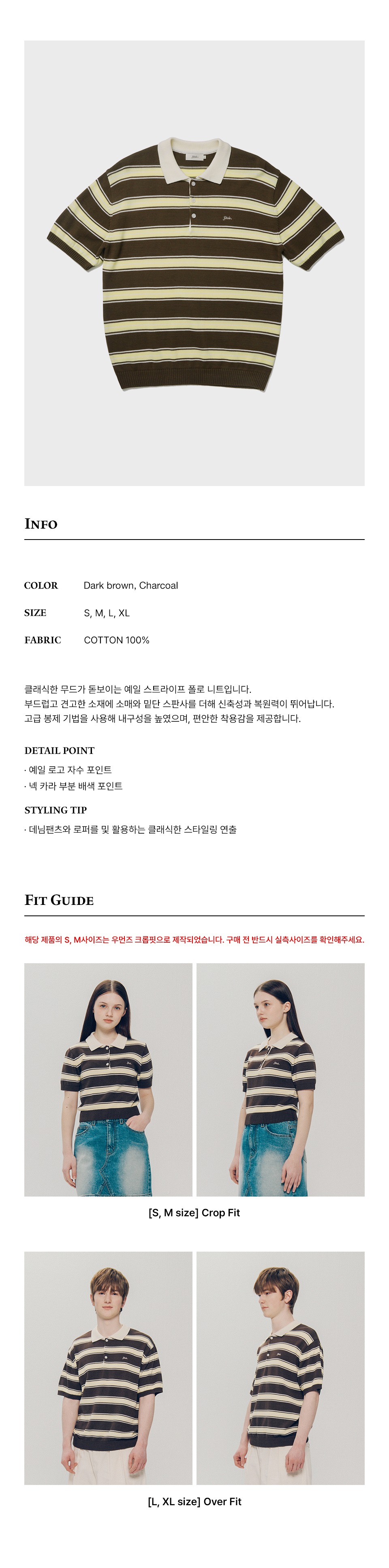 멀티 스트라이프 카라 니트 반팔_다크 브라운