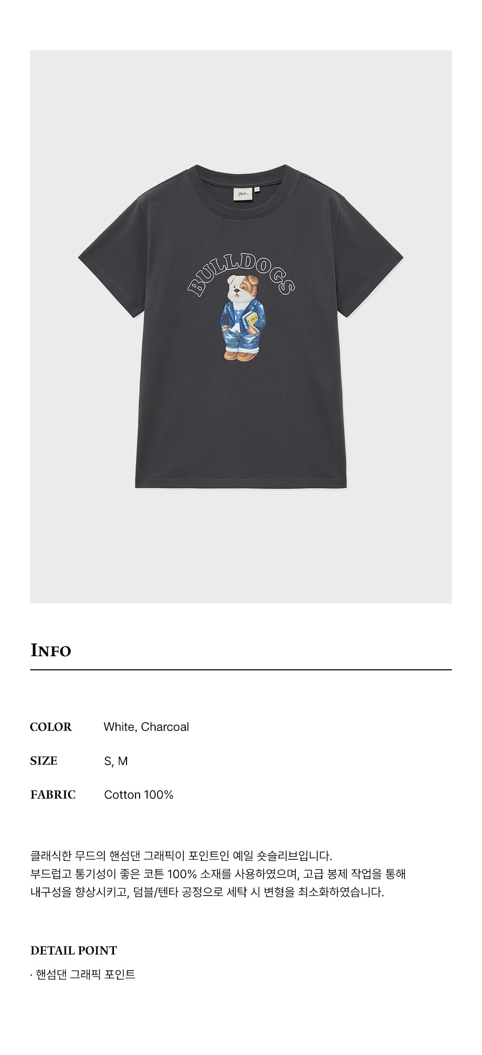 우먼즈 프레피 불독스 반팔티셔츠_차콜