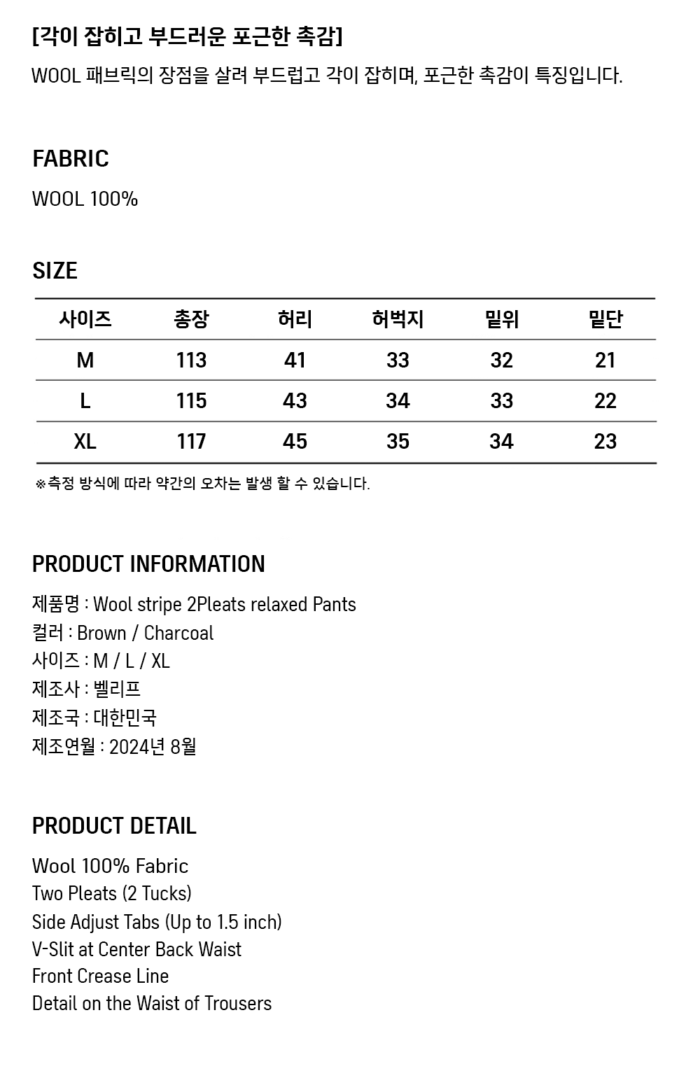 Wool stripe 2Pleats relaxed Pants (Brown)