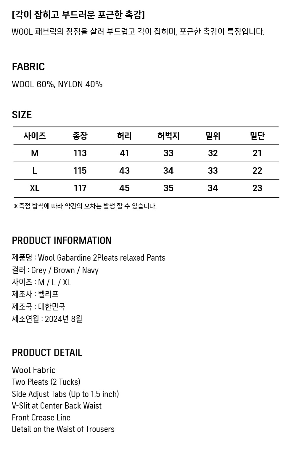 Wool Gabardine 2Pleats relaxed Pants (Navy)