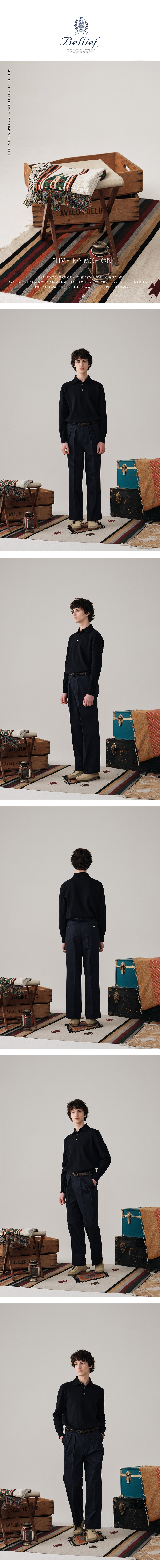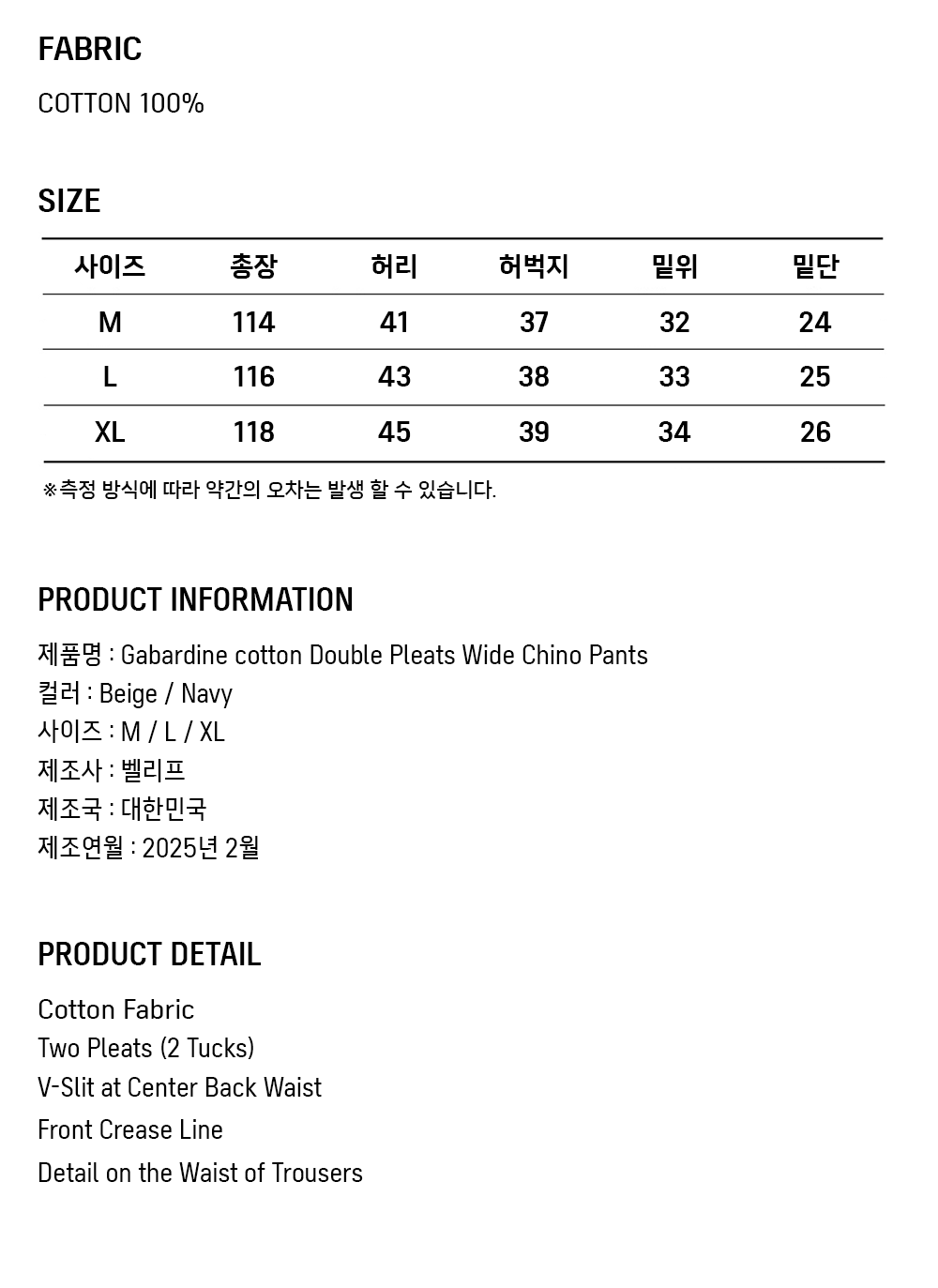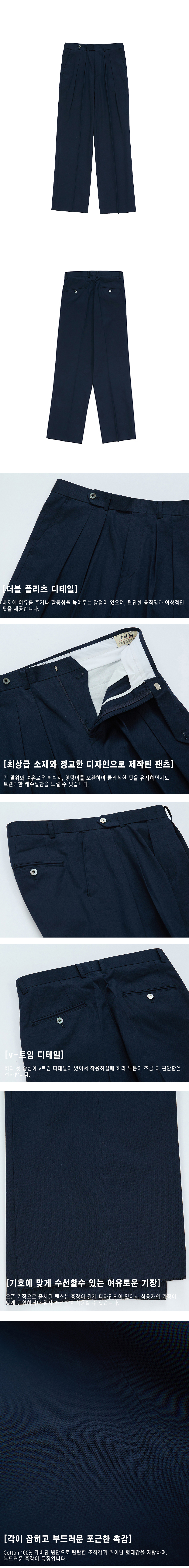 Gabardine cotton Double Pleats Wide Chino Pants (Navy)