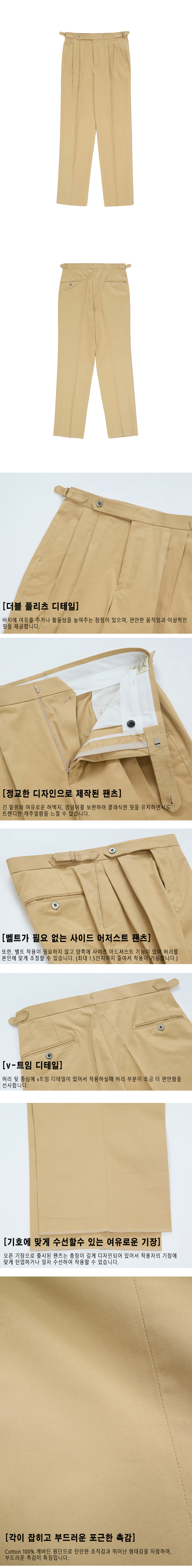 Cotton adjust Double Pleats relaxed Chino Pants (Beige)