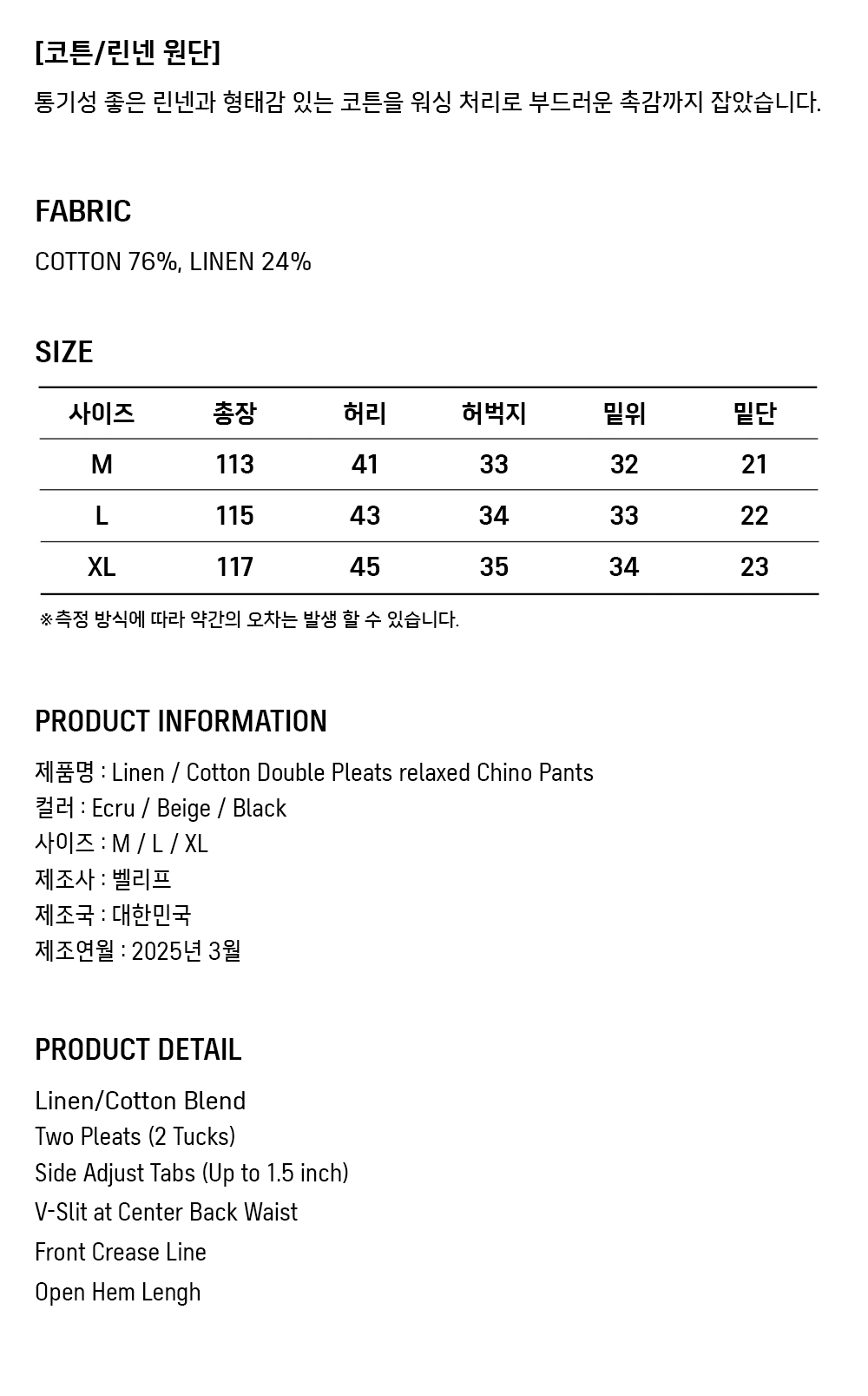 Linen / Cotton Double Pleats relaxed Chino Pants (Ecru)
