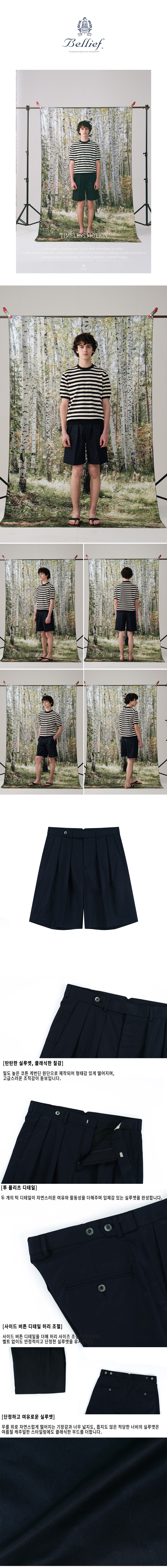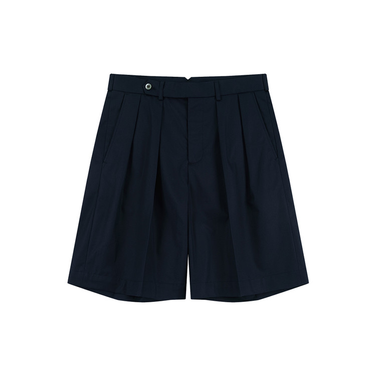 Essential Gabardine Cotton Double Pleats Chino Shorts (Navy)