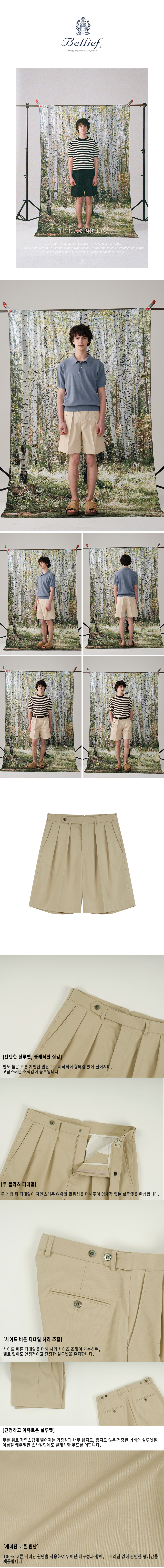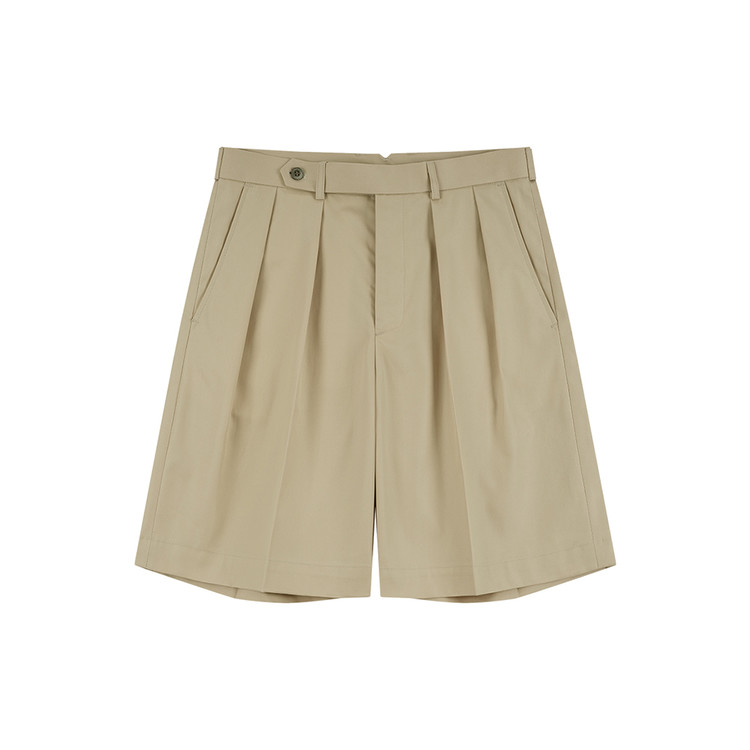 Essential Gabardine Cotton Double Pleats Chino Shorts (Beige)