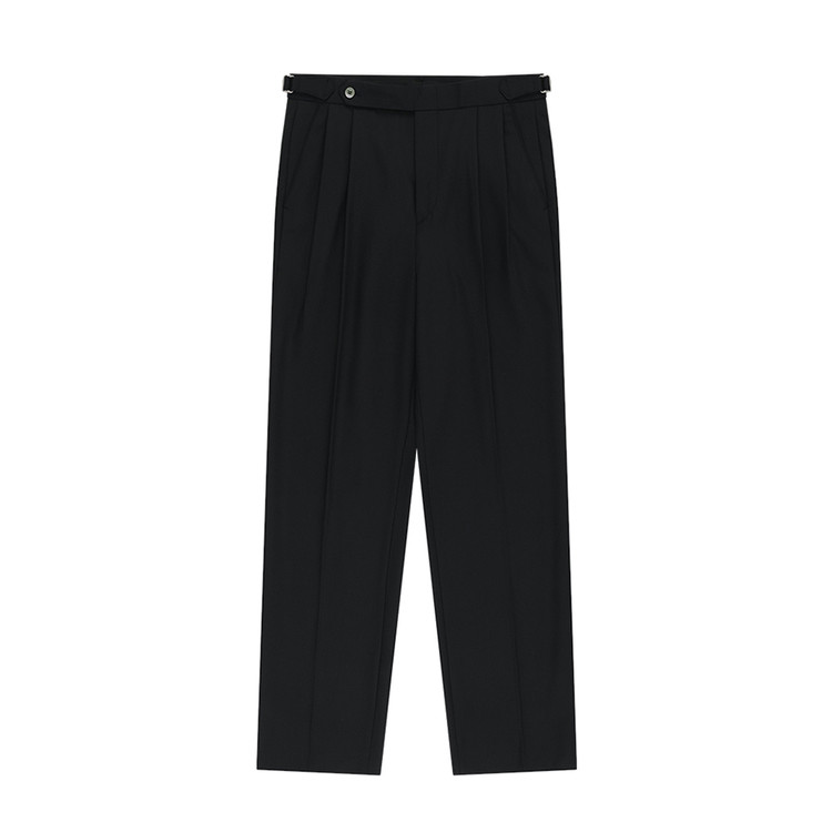 Wool Gabardine adjust Double-Pleated relaxed Trouser (Black)