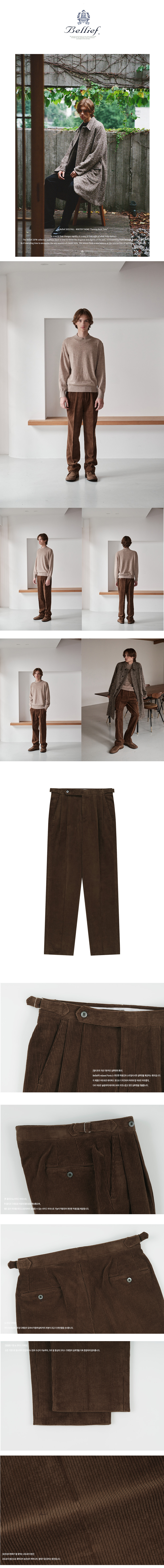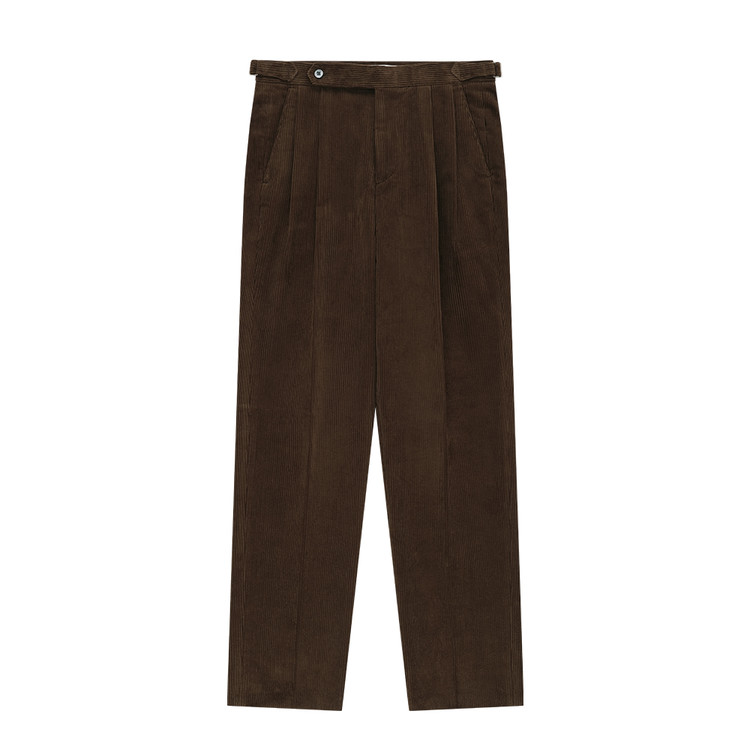 Corduroy adjust Double-Pleated relaxed Trouser (Brown)
