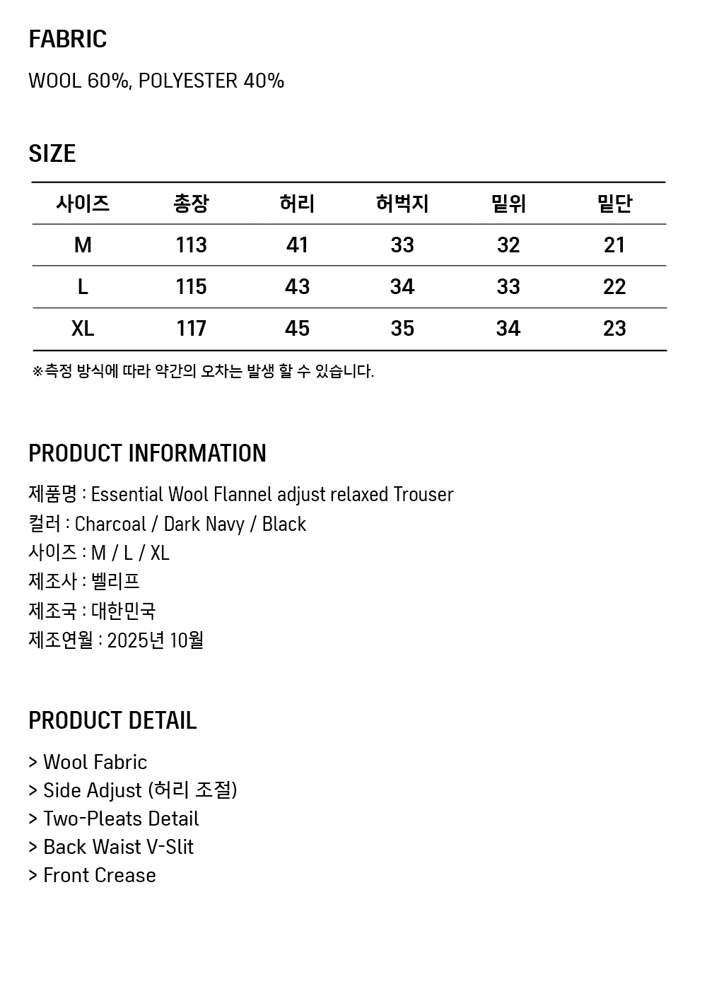 Essential Wool Flannel adjust relaxed Trouser (Black)