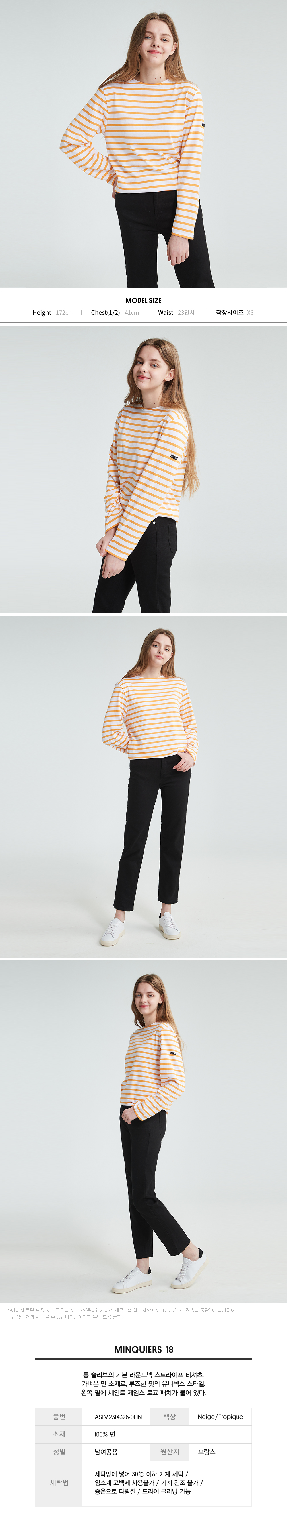 - 롱 슬리브의 기본 라운드넥 스트라이프 티셔츠