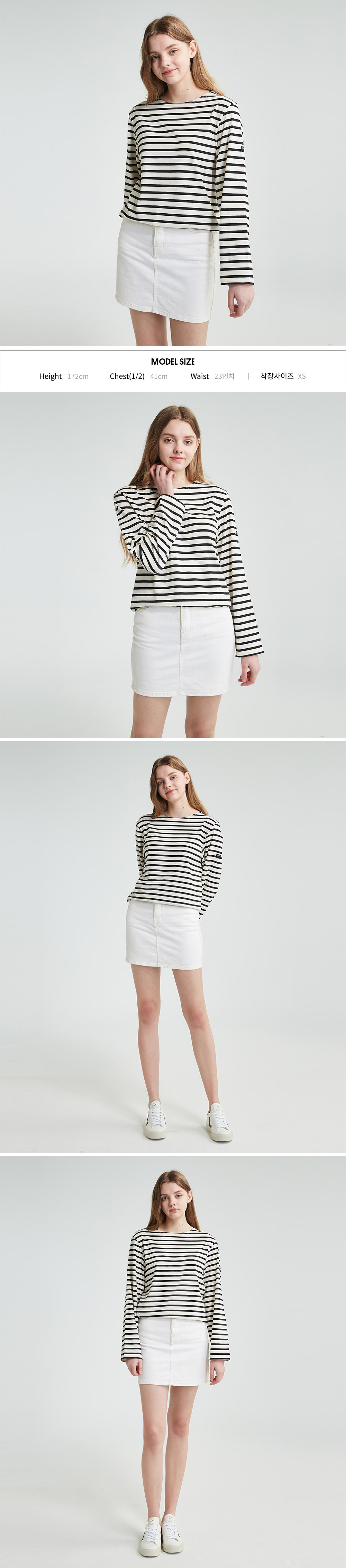 - 롱 슬리브의 기본 라운드넥 스트라이프 티셔츠