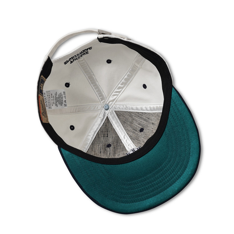 고품질의 코튼 트윌 원단을 사용한 모자입니다. 빈티지 베이스볼 캡입니다. 챙 아래는 눈을 보호하기 위한 초록색의 배색 원단을 적용하였으며, 전면 패널 안에는 리넨 소재를 덧대어 청량감을 줍니다. 뒷면에는 사이즈 조절이 가능한 벨트 시스템이 적용되어 있습니다.
