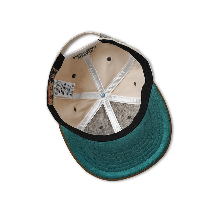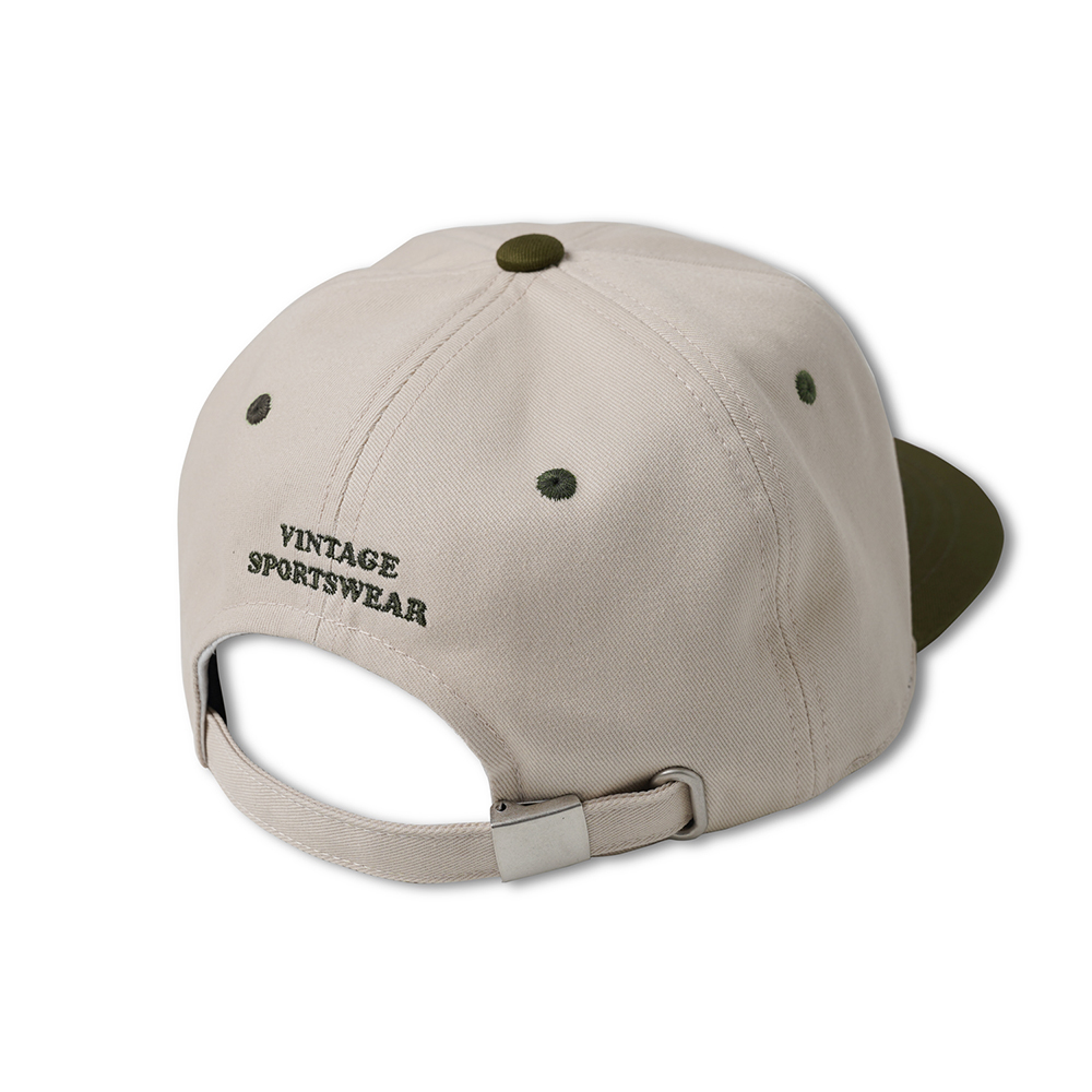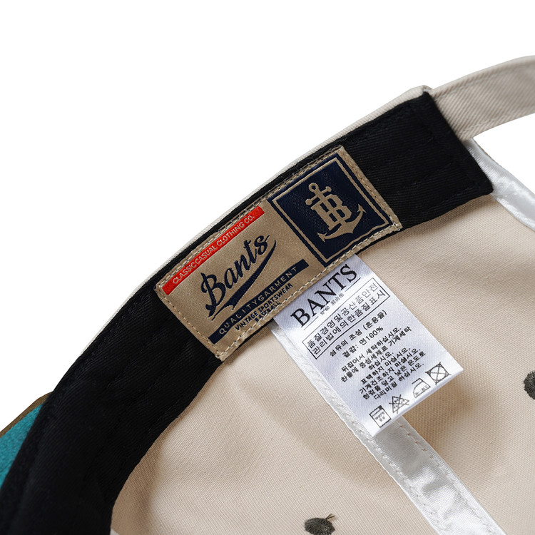 고품질의 코튼 트윌 원단을 사용한 모자입니다. 빈티지 베이스볼 캡입니다. 챙 아래는 눈을 보호하기 위한 초록색의 배색 원단을 적용하였으며, 전면 패널 안에는 리넨 소재를 덧대어 청량감을 줍니다. 뒷면에는 사이즈 조절이 가능한 벨트 시스템이 적용되어 있습니다.