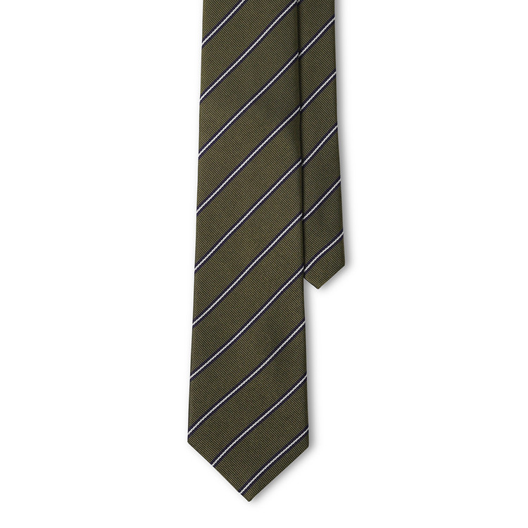 고품질 자연 실크를 사용하여 제작한 타이입니다. 프레피 무드에 어울리는 스트라이프 패턴으로 기본 스타일링으로 활용하기에 용이합니다. 엄선된 컬러를 통해 적용된 레지멘탈 스트라이프 무늬로 고급스러움을 보여줍니다.