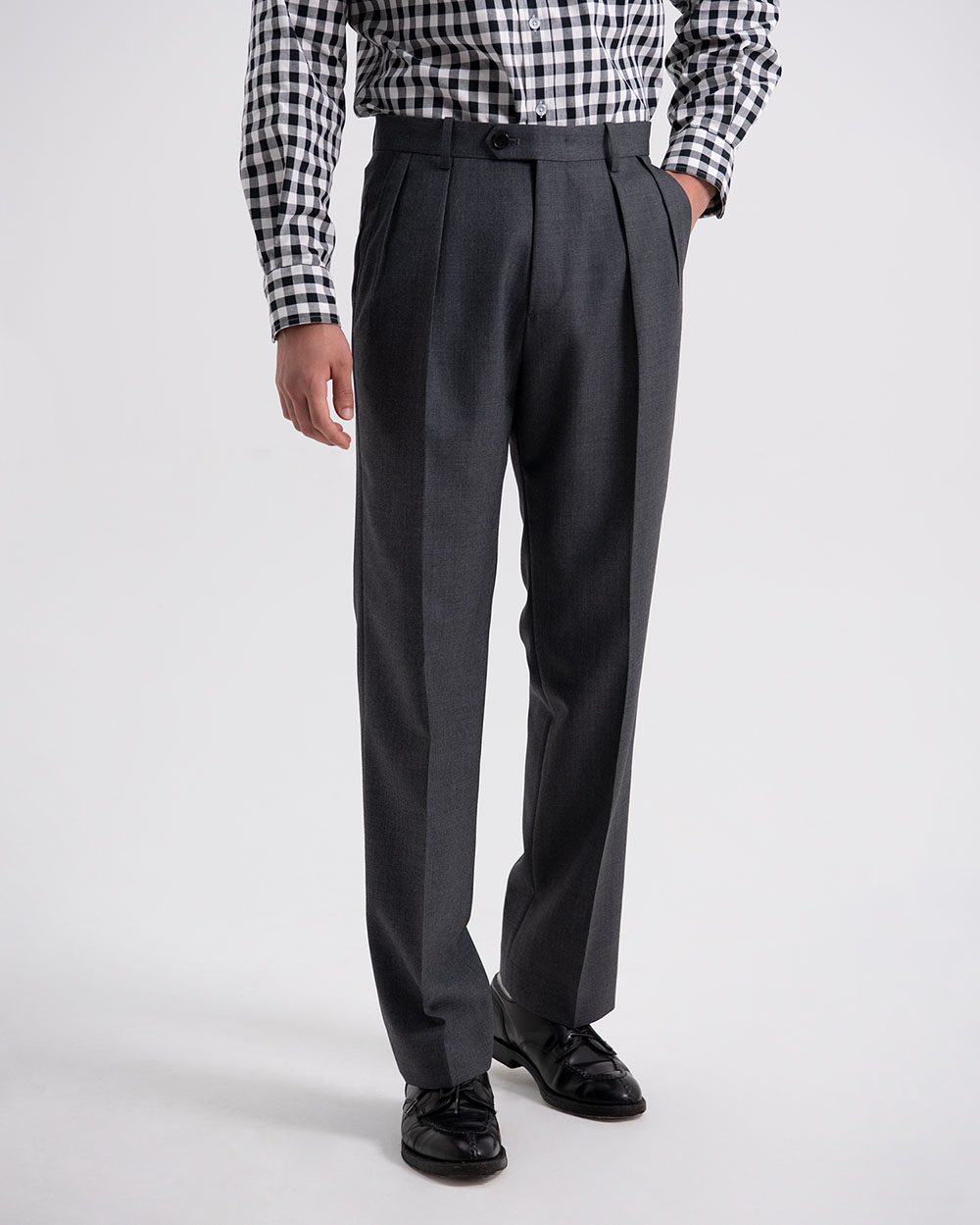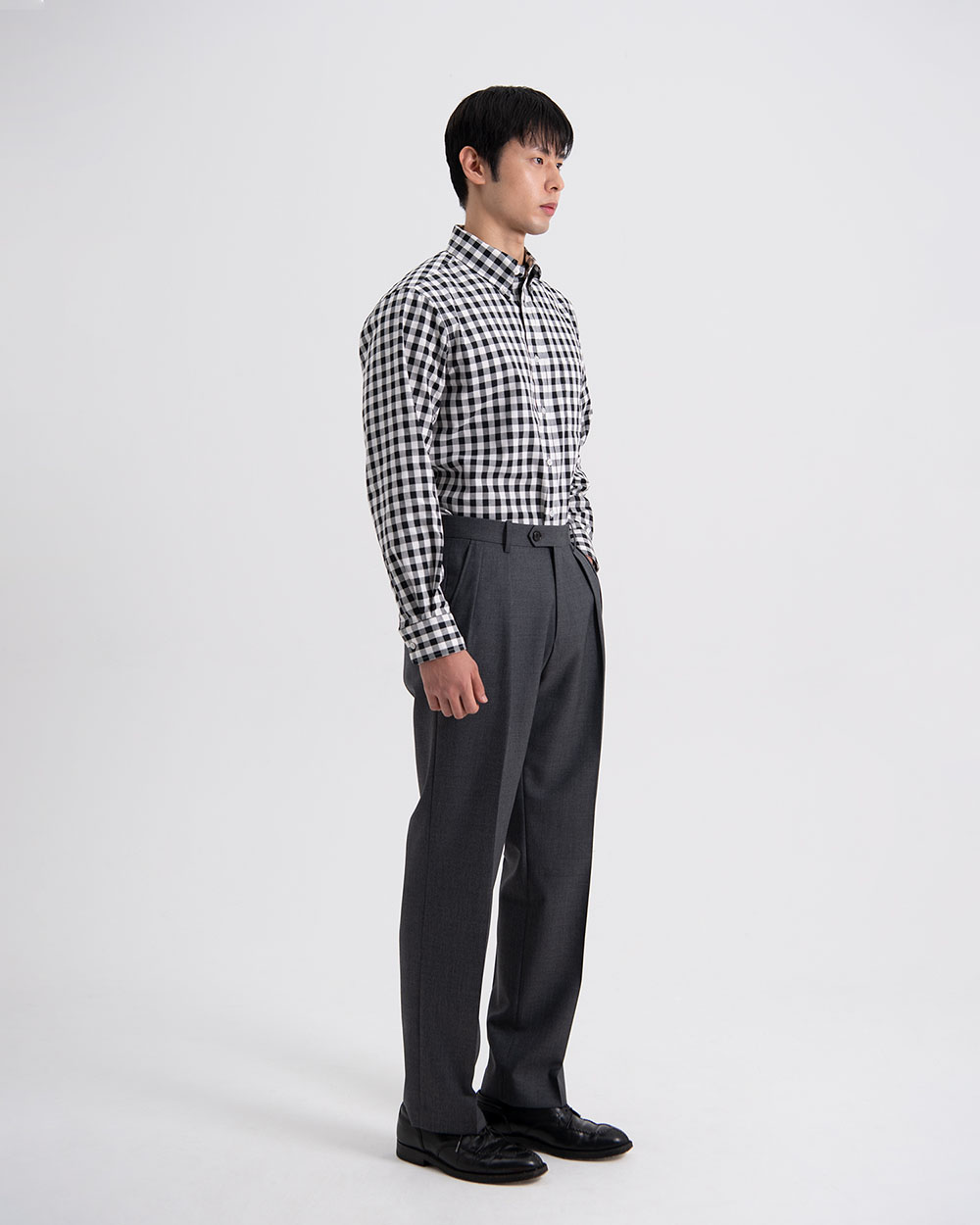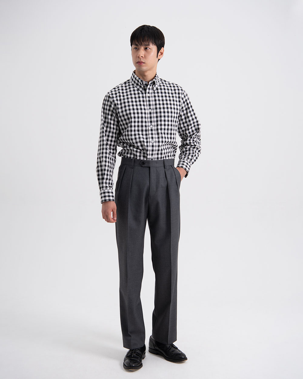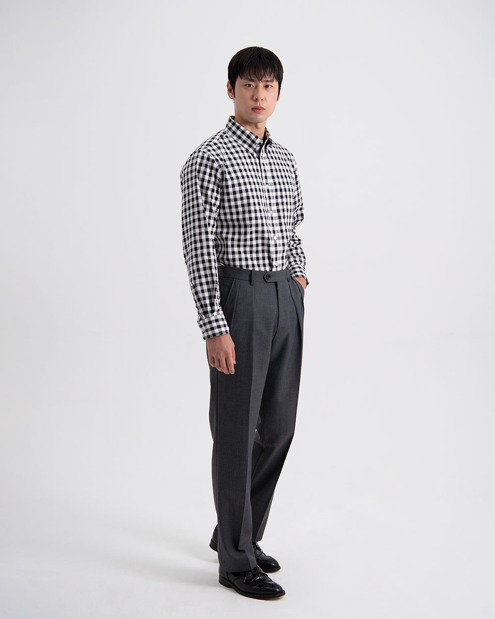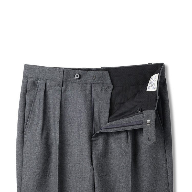 가장 기본이 되는 아이템 중 하나인 그레이 컬러의 우스티드 울 팬츠입니다. 여름을 제외한 모든 계절에 착용할 수 있는 소재를 사용했습니다. 실용적이고 자주 입을 수 있는 팬츠를 만들고자 맵시 있는 실루엣과 편안한 착용감에 중점을 두었습니다. 가볍지만 탄탄한 소재를 사용하여 고급스러우면서도 탄력있는 원단감에 반츠의 실루엣이 더해져있습니다. 역방향의 투턱 디테일로 밑위 라인을 우아하게 잡아주는 기능뿐 아니라 디자인적으로도 심미성을 보여줍니다. 셔츠와 타이를 매치하였을 때는 클래식하게, 플란넬 셔츠나 니트를 매치하였을 때는 캐주얼하게 다양한 방면으로 착용이 가능한 활용도 높은 제품입니다.