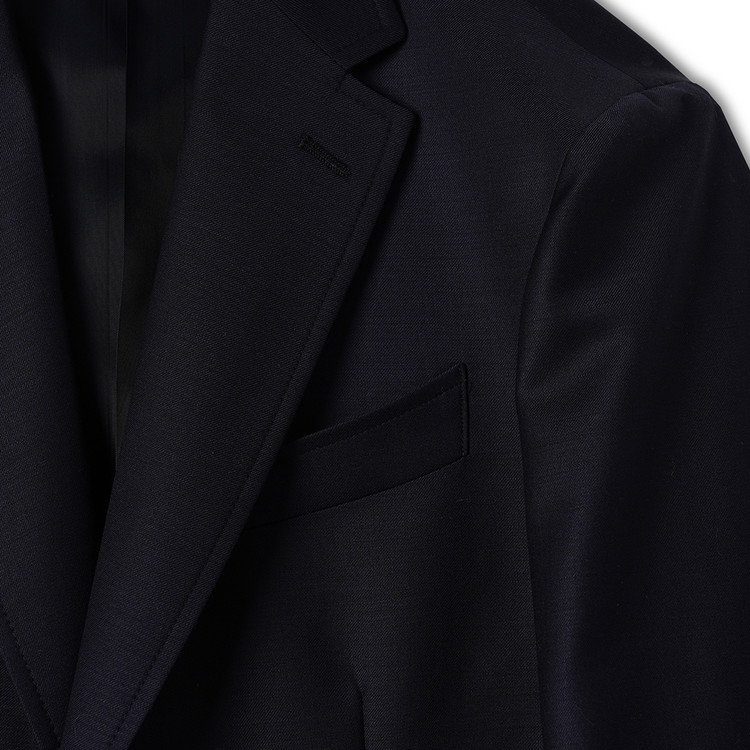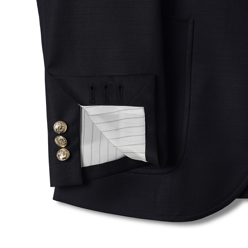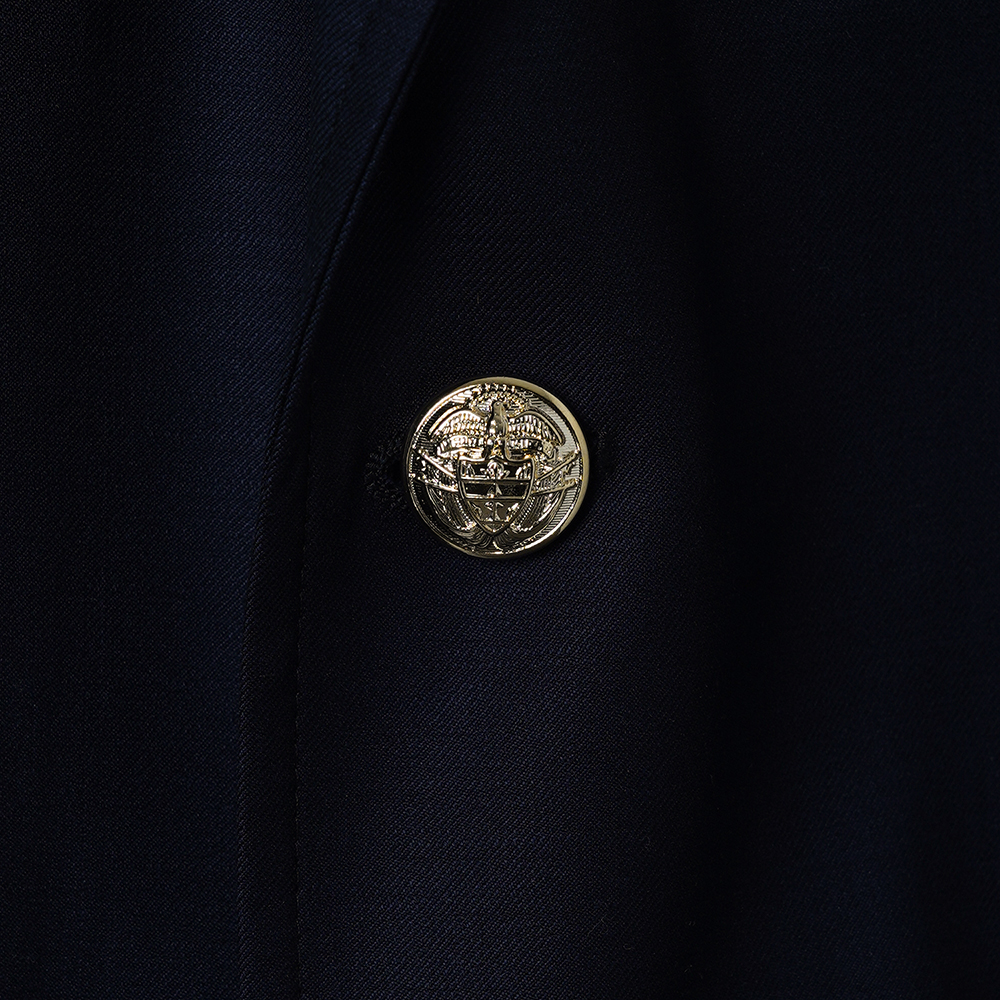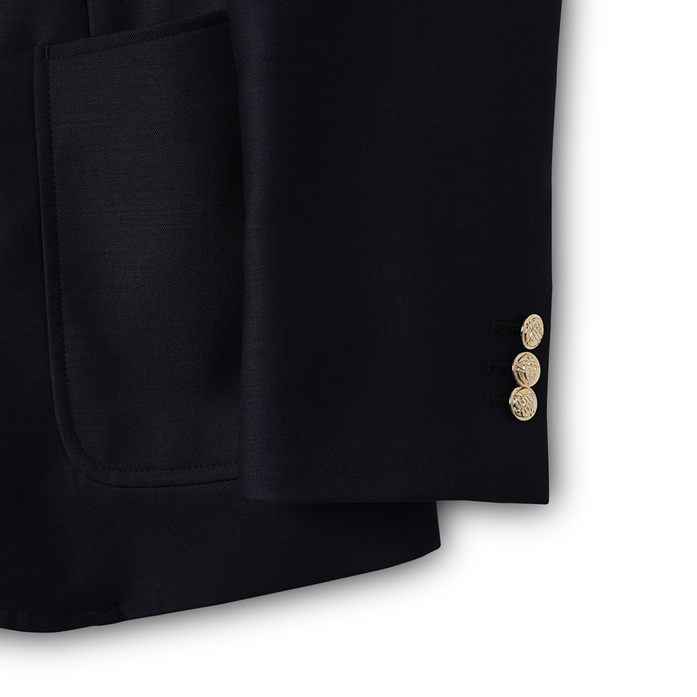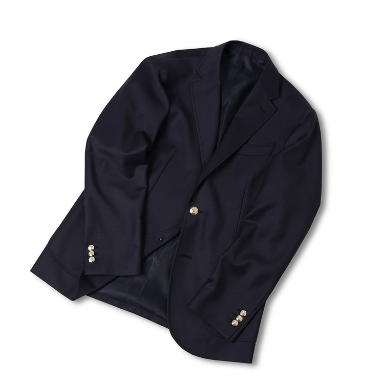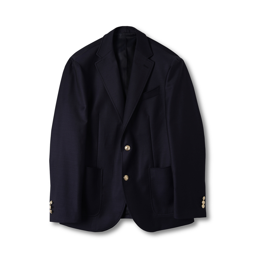 금장 버튼이 인상적인 우스티드 울 블레이저입니다. 블레이저는 프레피룩을 대표하는 아이템입니다. 금장버튼이 불꽃처럼 빛난다라고 하여 섬광을 뜻하는 blaze가 붙게 되었다는 설이 있습니다. 네이비 컬러의 원단에 금장버튼을 사용하여 전형적인 블레이저의 모습을 재현하였습니다. 여름을 제외한 모든 계절에 착용할 수 있는 우스티드 울 소재를 사용했습니다. 실용적이고 자주 입을 수 있는 자켓을 만들고자 맵시 있는 실루엣과 편안한 착용감에 중점을 두었습니다. 가볍지만 탄탄한 소재를 사용하여 고급스러우면서도 탄력있는 원단감에 반츠의 실루엣이 더해져있습니다. 투 버튼에 적당한 너비의 라펠 그리고 아웃포켓 디테일로 캐주얼 무드에 적합한 디자인을 채용하였습니다. 울 팬츠와 타이를 매치하여 클래식한 느낌을 연출하는 것 외에도 치노팬츠나 스웻 아이템들과의 조합도 가능합니다. 옷장에서 오랫동안 활약할 수 있는 클래식 아이템입니다.