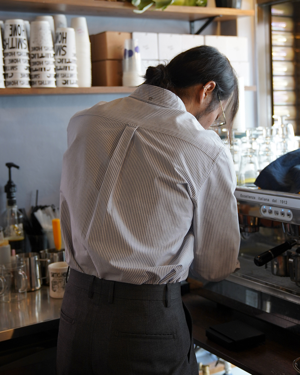 KUWAMURA社의 218g/㎡ 헤비 옥스포드 코튼 원단을 사용하여 제작한 버튼 다운 셔츠입니다. 최고 품질의 옥스포드 셔츠를 목표로 기획된 셔츠입니다. 칼라 모양과 타이 스페이스 등 다년간의 데이터를 활용한 패턴 노하우를 적용하여 쾌적한 착용감을 선사합니다. 비접착 심지를 적용한 칼라는 자연스럽고 볼륨감있는 형태를 보여줍니다. 뒷 칼라에도 버튼 다운이 적용되어 있으며, 뒷판에는 루프 디테일로 실용성과 심미성을 더했습니다. 가장 기본이 되는 아이템 중 하나로 어떤 스타일링에도 쉽게 착용이 가능합니다.