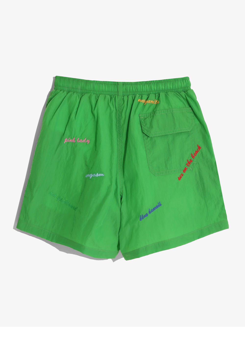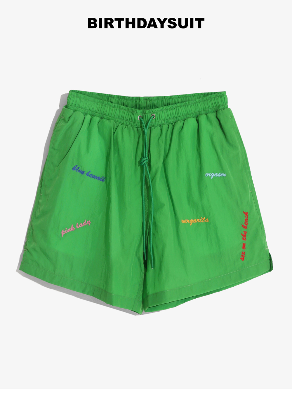 SWIMMING TRUNKS는 바스락거리는 터치감의 나일론 소재로 제작된 스윔 팬츠로 BIRTHDAYSUIT만의 매력적인 컬러 감각이 돋보입니다. 안쪽에는 메쉬 안감 처리를 통해 시원한 착용감을 선사하며 허리의 스트링을 통해 핏 조절이 가능합니다. 바디 전체에는 칵테일명 자수가 포인트로 새겨져 있어 다가오는 여름 휴양지에서 스타일리쉬하게 칵테일을 즐겨보시는건 어떨까요?