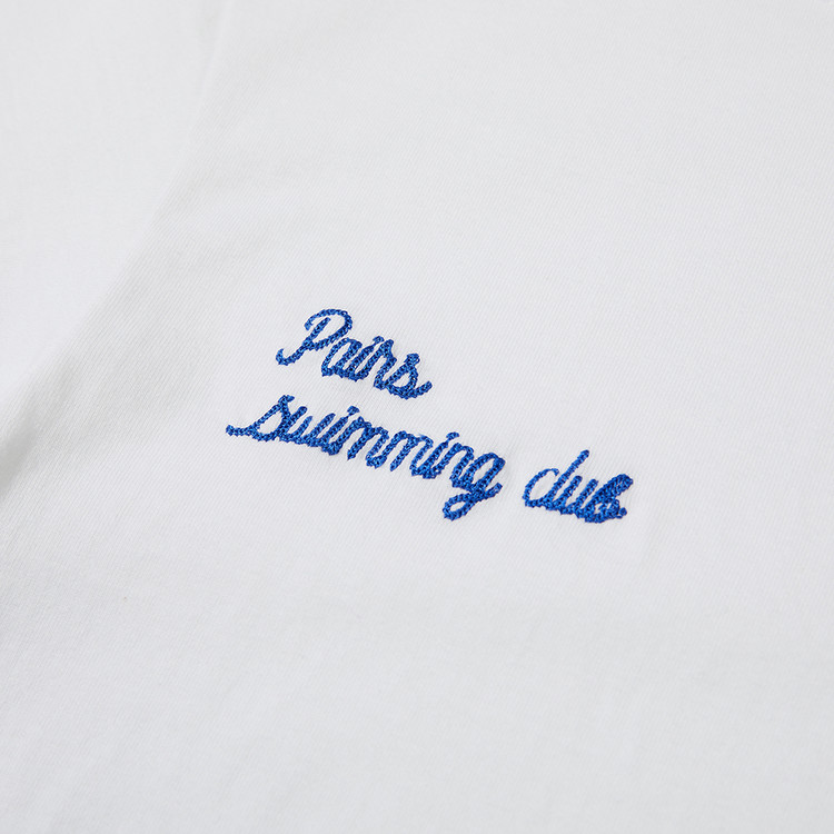 - PAIRS SWIMMING CLUB 로고가 자수와 프린팅 된 남여공용 티셔츠입니다