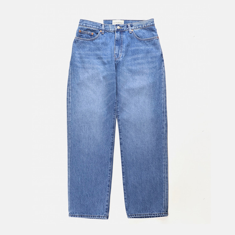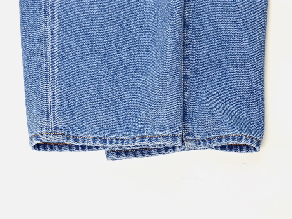 아래로 갈수록 좁아지는 클래식 테이퍼드 실루엣. 체인스티칭 봉제방식이 사용되어 옆선과 밑단이 자연스럽게 돌아가있는 구조입니다.