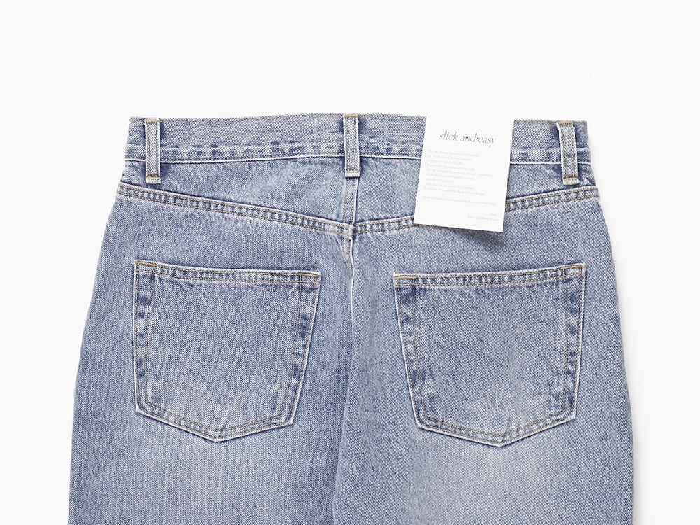 아래로 갈수록 좁아지는 클래식 테이퍼드 실루엣. 체인스티칭 봉제방식이 사용되어 옆선과 밑단이 자연스럽게 돌아가있는 구조입니다.