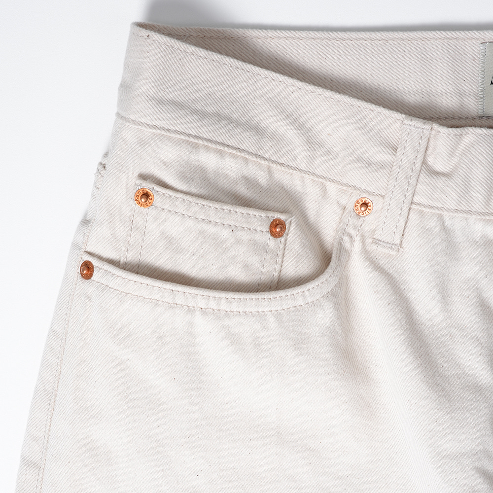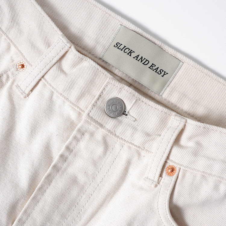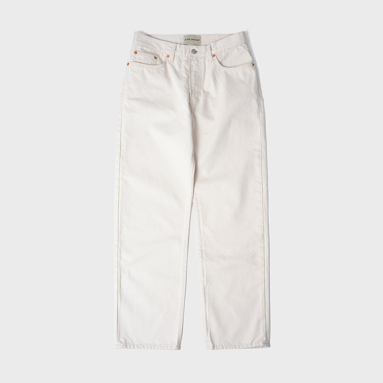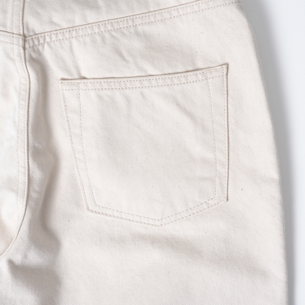 아래로 갈수록 좁아지는 클래식 테이퍼드 실루엣. 체인스티칭 봉제방식이 사용되어 옆선과 밑단이 자연스럽게 돌아가있는 구조입니다.