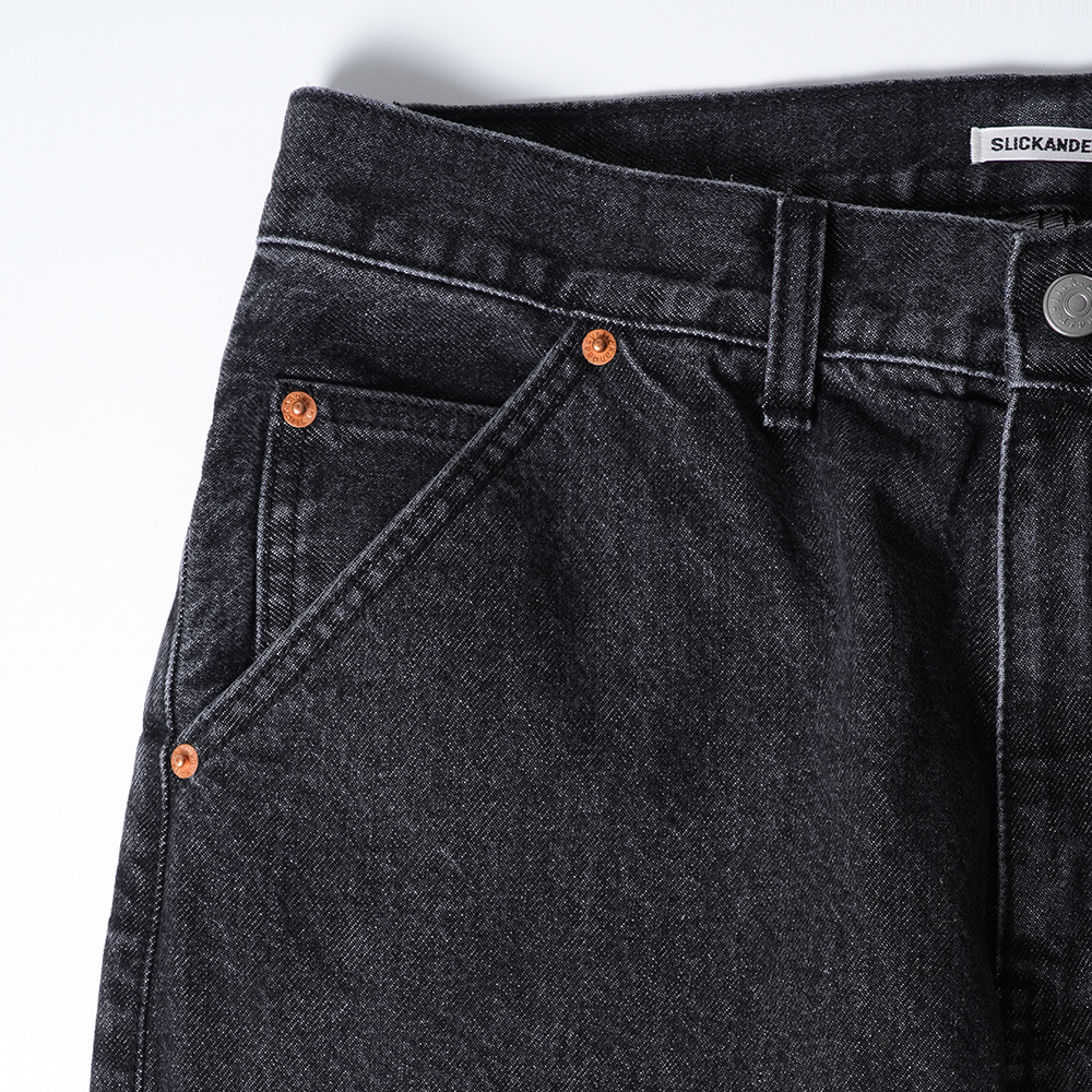 부드러운 13oz 데님 패브릭, 착용과 케어가 편리하도록 위시드 처리 되었습니다.
