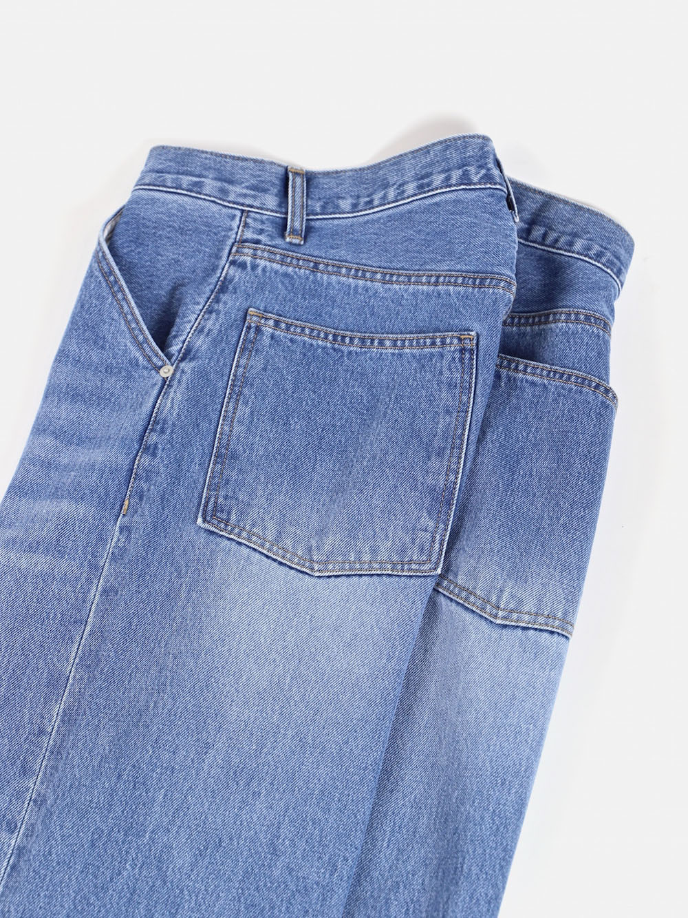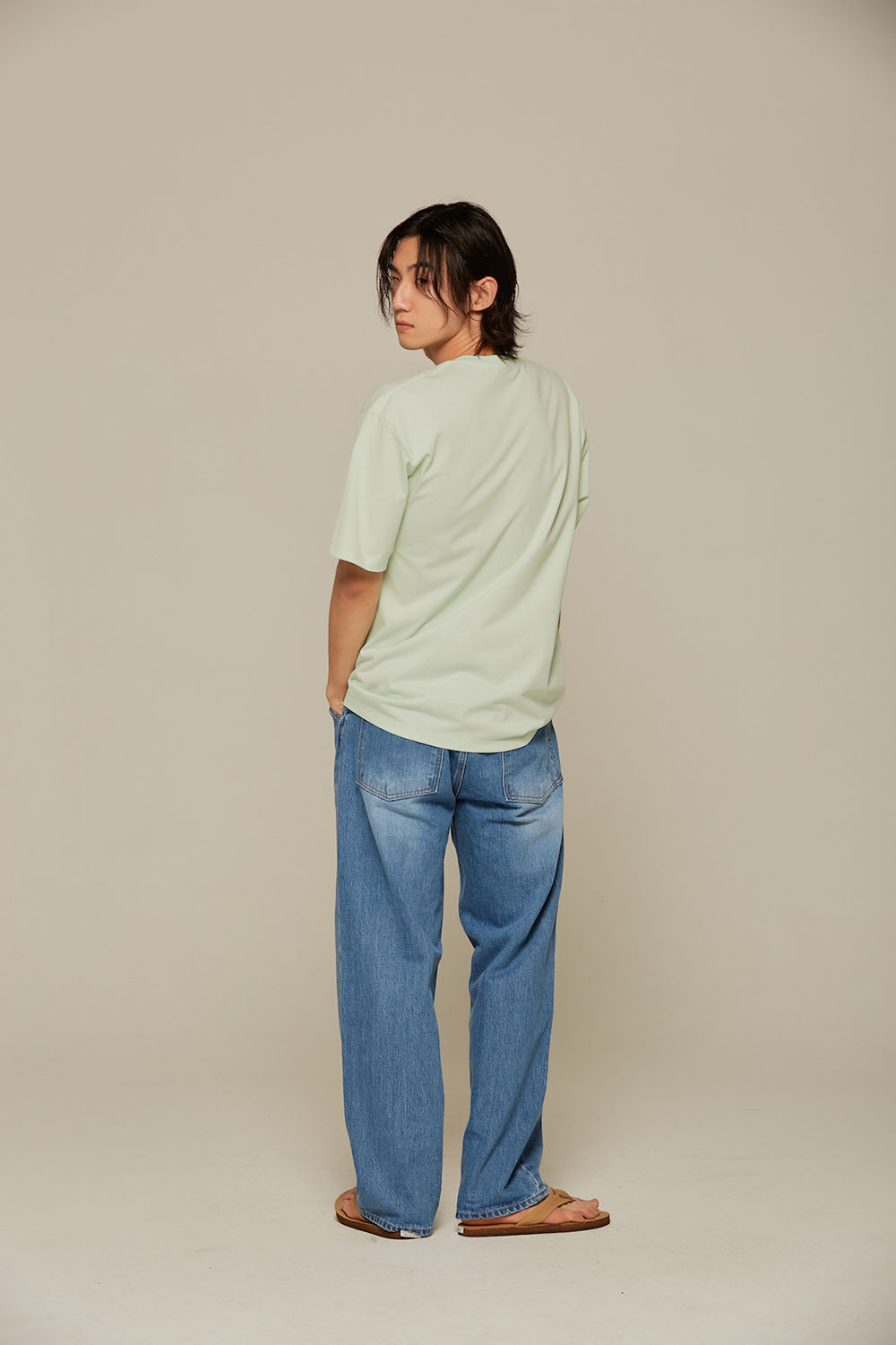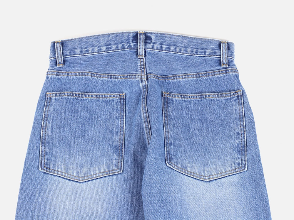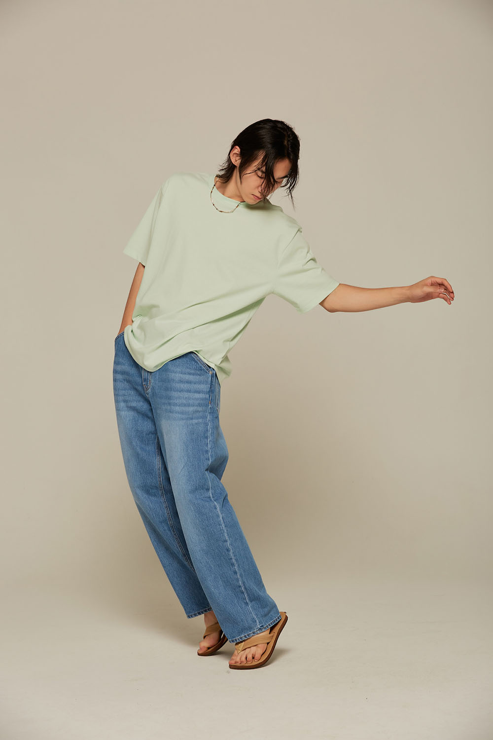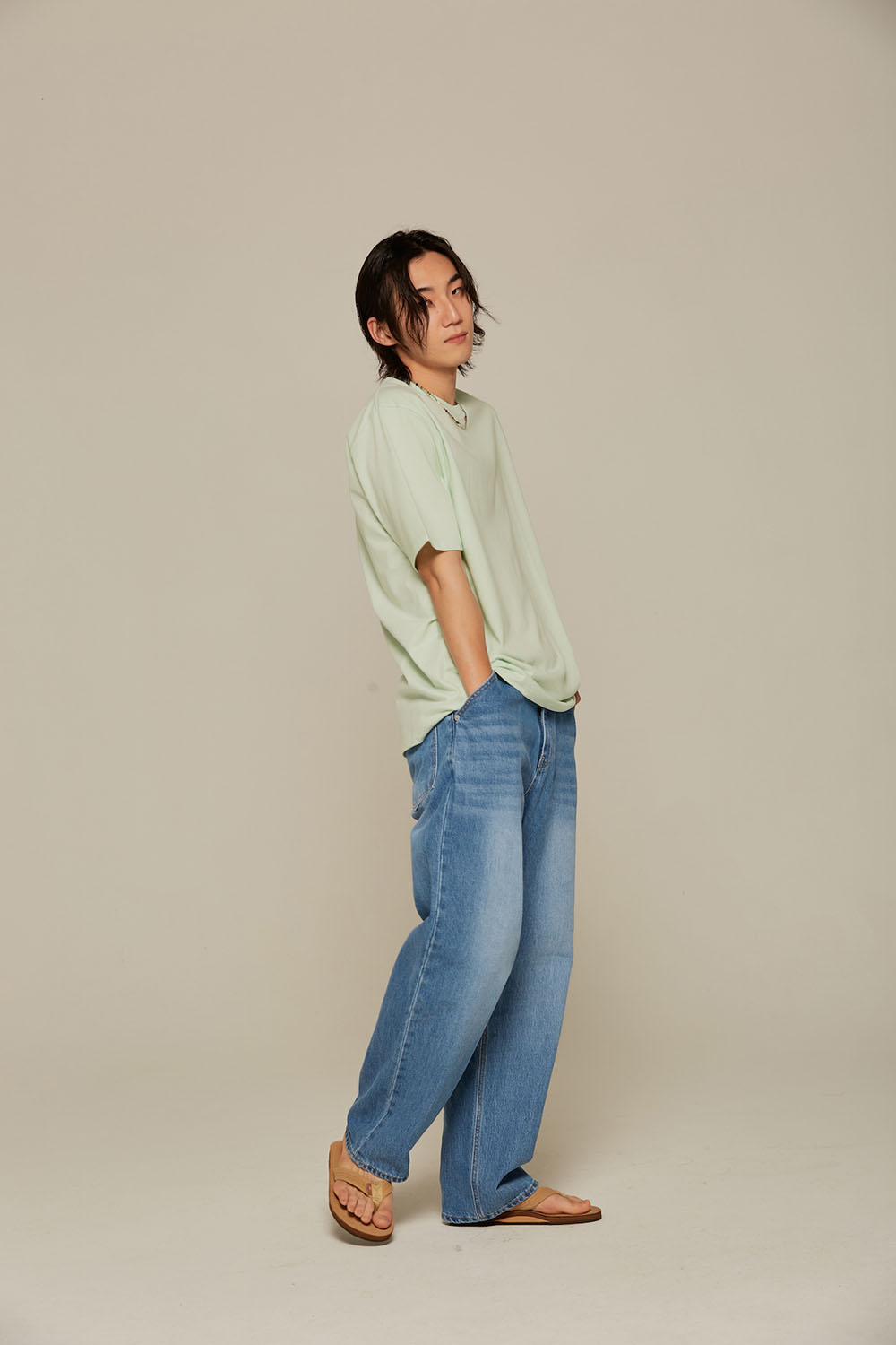 부드러운 13oz 데님 패브릭. 착용과 케어가 편리하도록 워시드 처리 되었습니다. 90's 올드 바이브를 기억하며 착용할 수 있는 루프핏 실루엣.