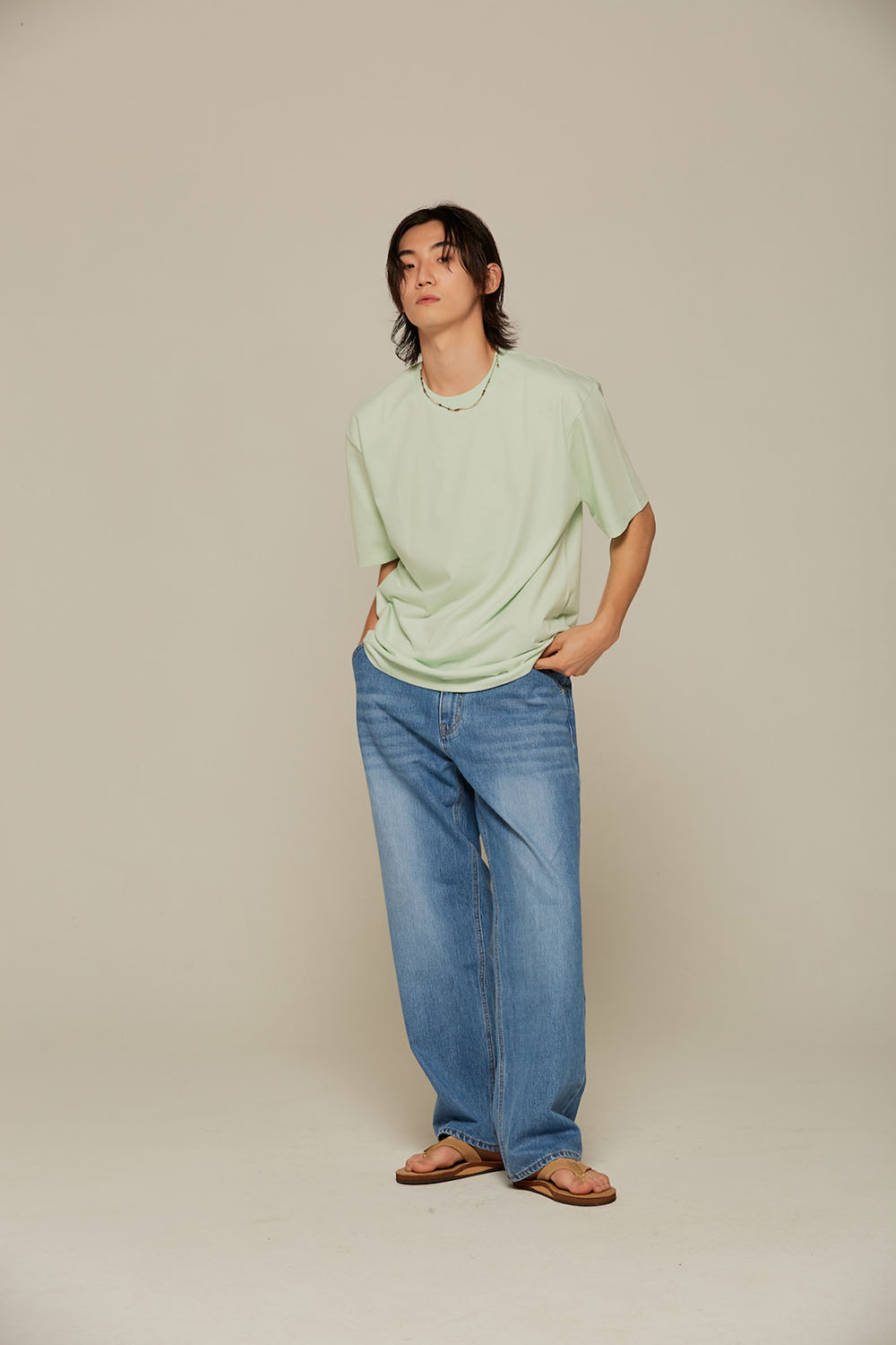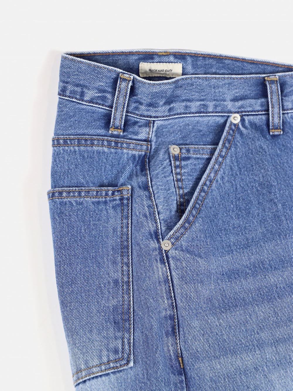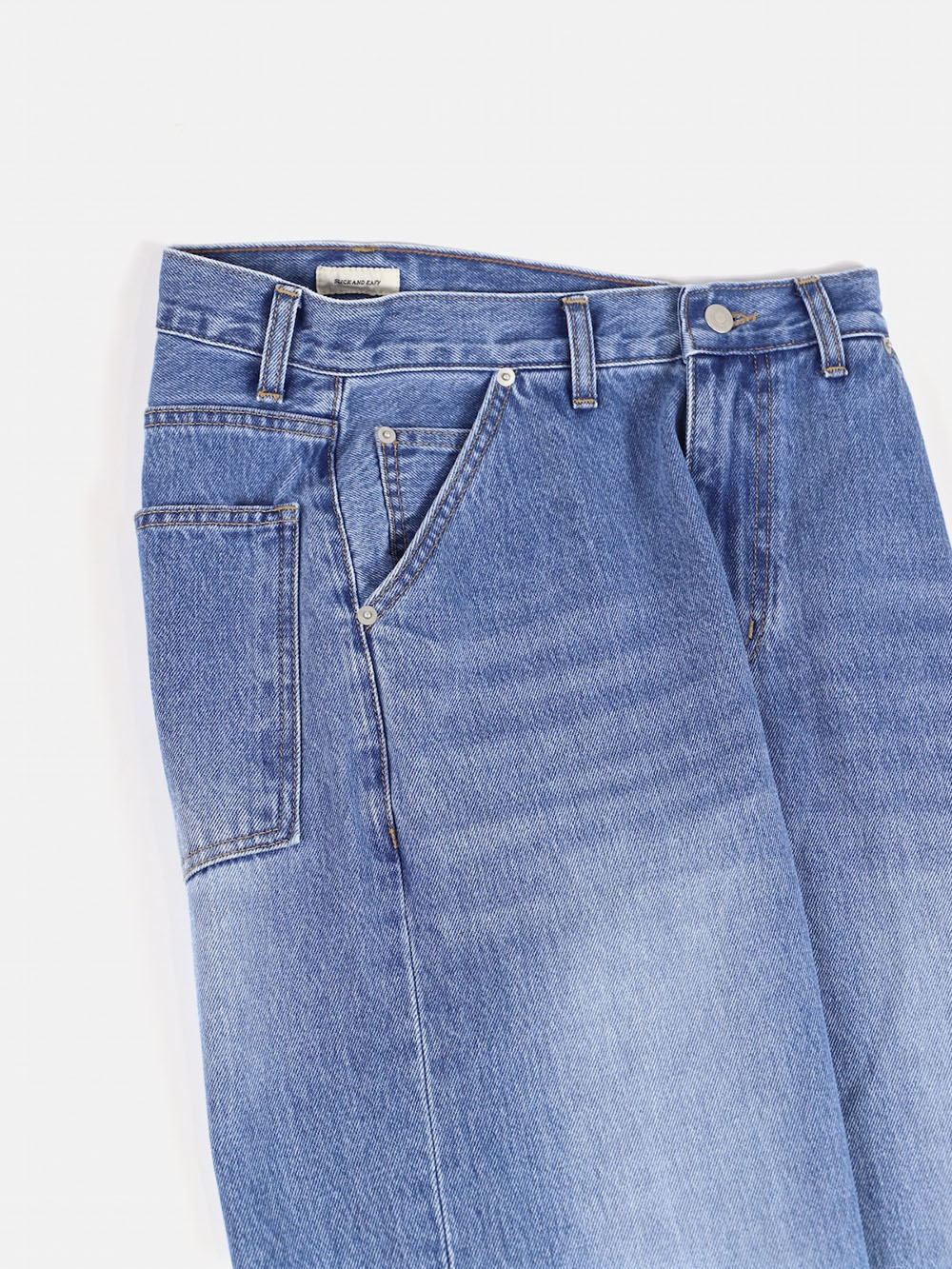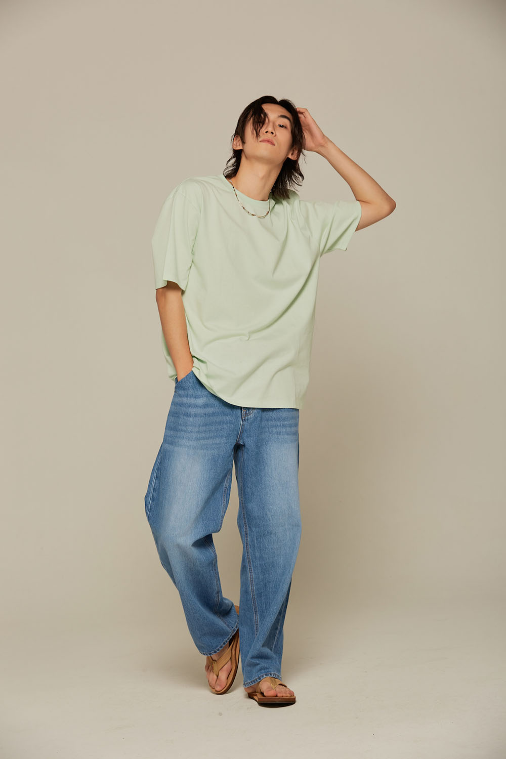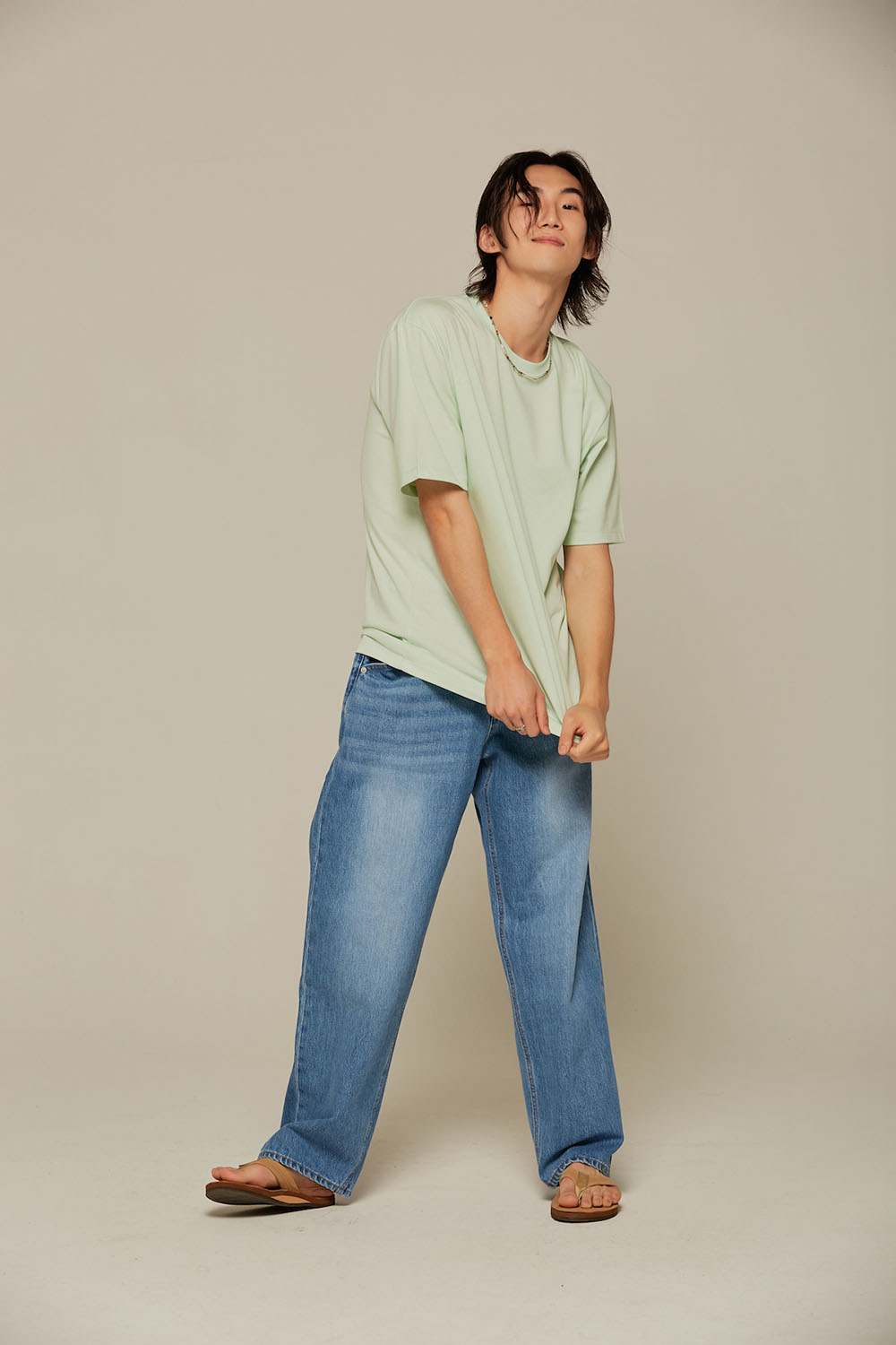 부드러운 13oz 데님 패브릭. 착용과 케어가 편리하도록 워시드 처리 되었습니다. 90's 올드 바이브를 기억하며 착용할 수 있는 루프핏 실루엣.