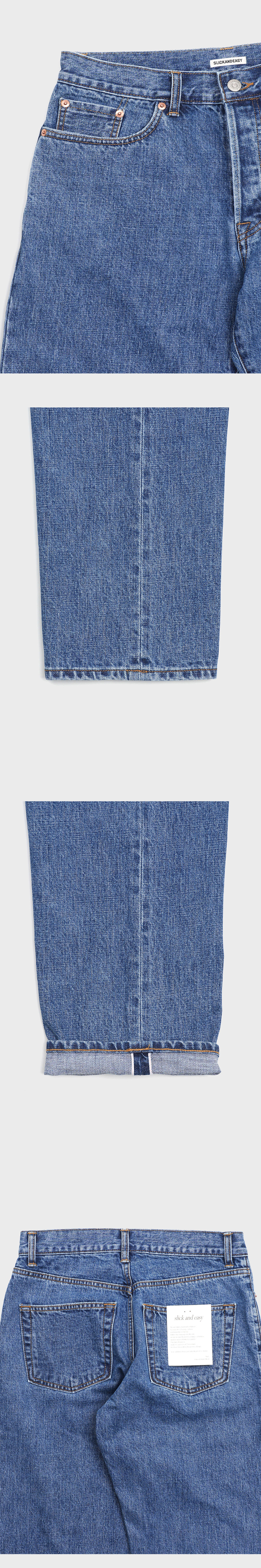 빈티지 리바이스 501을 현대적으로 재해석하여 완성된 슬릭앤이지의 5포켓 데님 팬츠입니다.